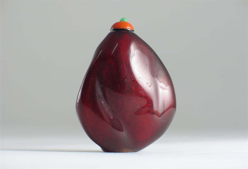 A Chinese amber snuff bottle, of organic form, 6cm.