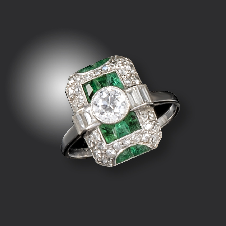 An Art Deco emerald and diamond ring