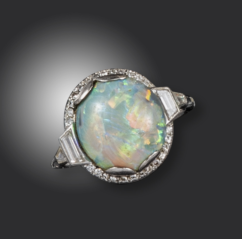 An Art Deco opal and diamond cluster ring