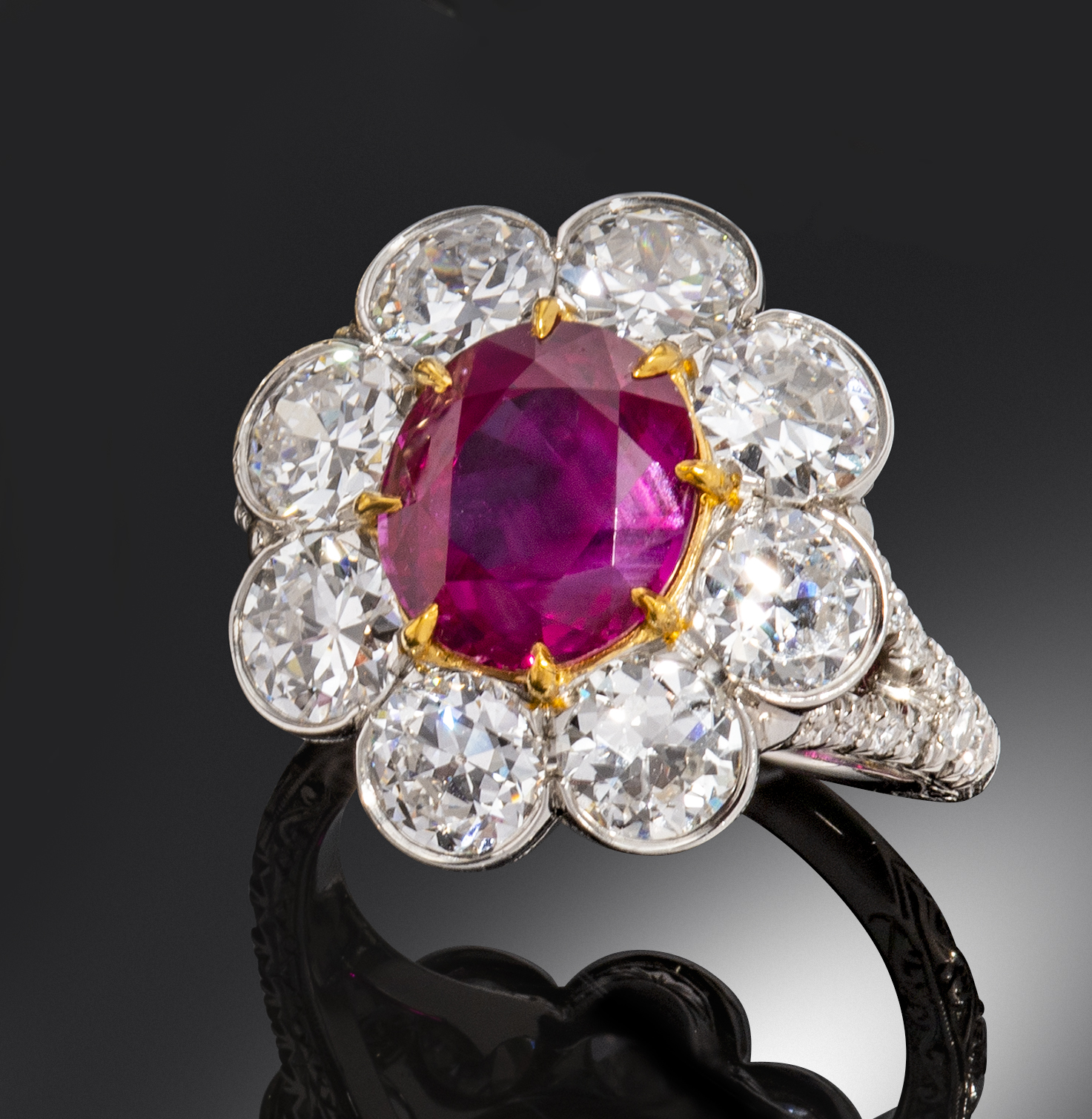 Accompanied by report number 77882 dated 12 January 2015 from SSEF stating that the oval-shaped ruby weighs approximately 3.20cts and is a natural ruby with no indications of heat treatment. Origin: Burma (Myanmar). (The ruby has been reset since certification).
