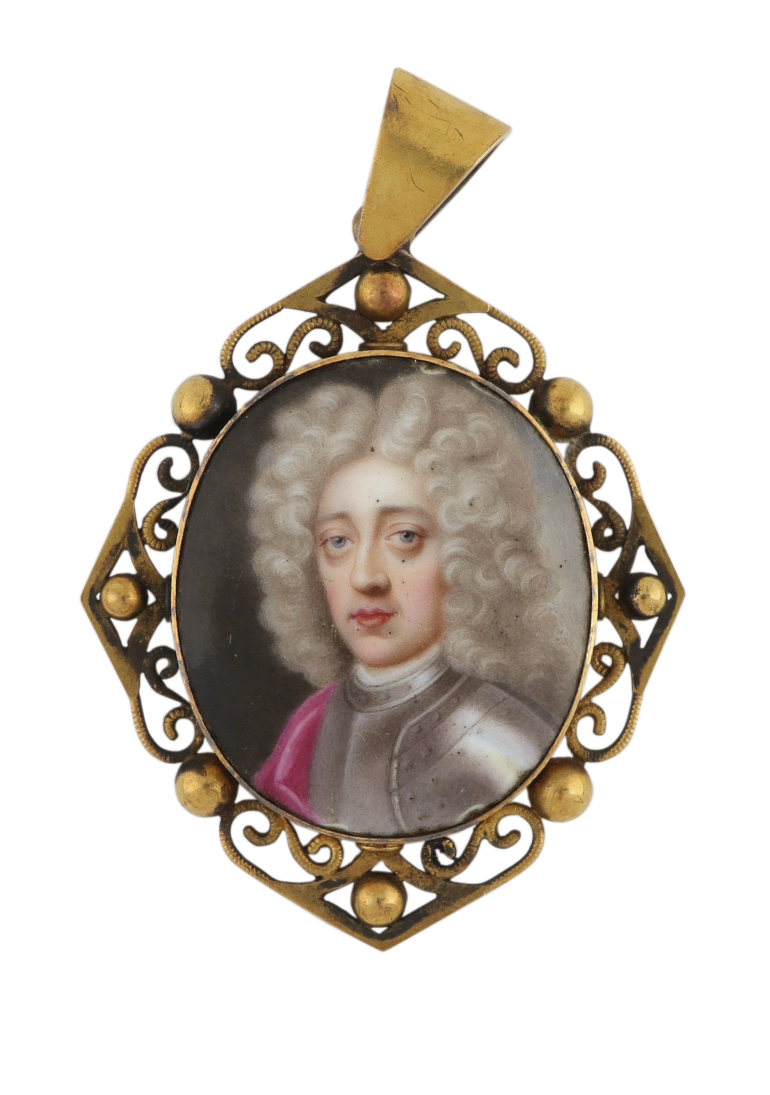 Continental School 18th Century Portrait miniature of a gentleman wearing armour Oval