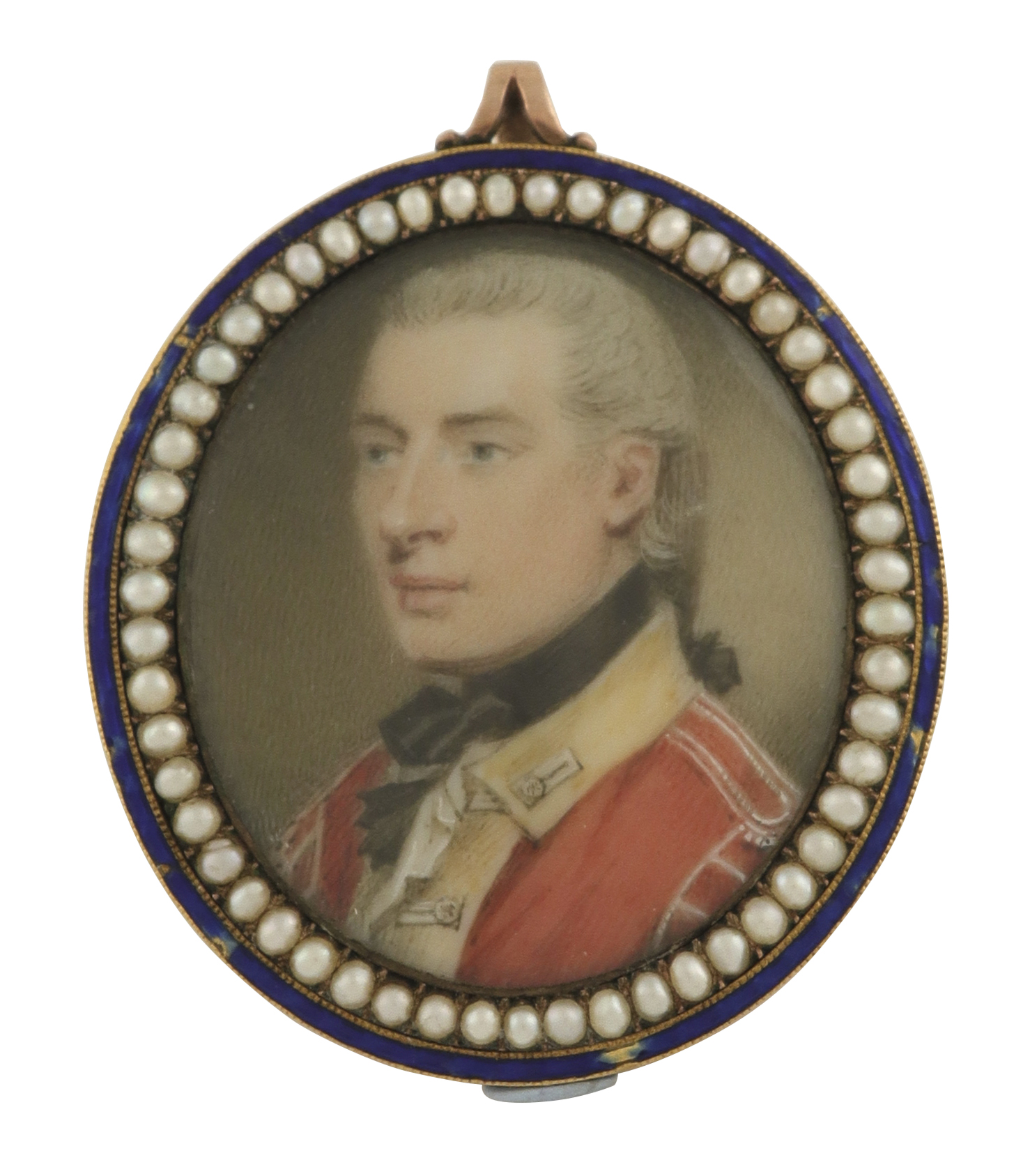 Portrait miniature of an officer, in red uniform, hair en queue