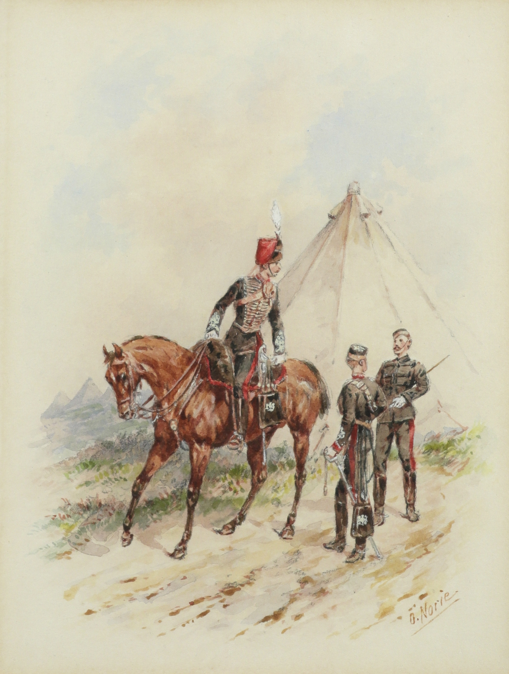Orlando Norie (1832-1901) Three soldiers in an Egyptian landscape Signed Watercolour and pencil...