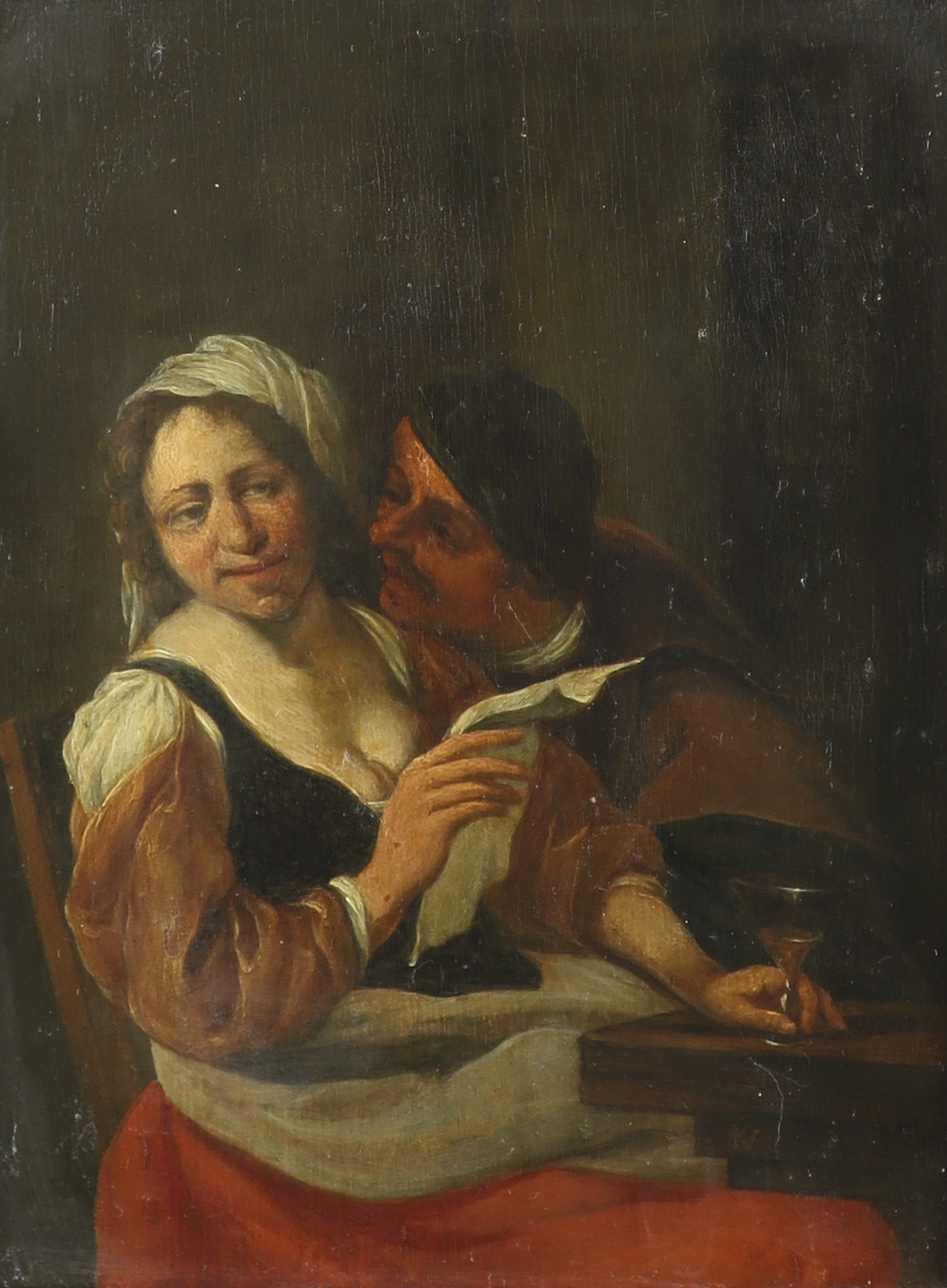 Attributed to Franz Anton Kraus (German 1705-1752) A boor courting a woman in a tavern Signed...