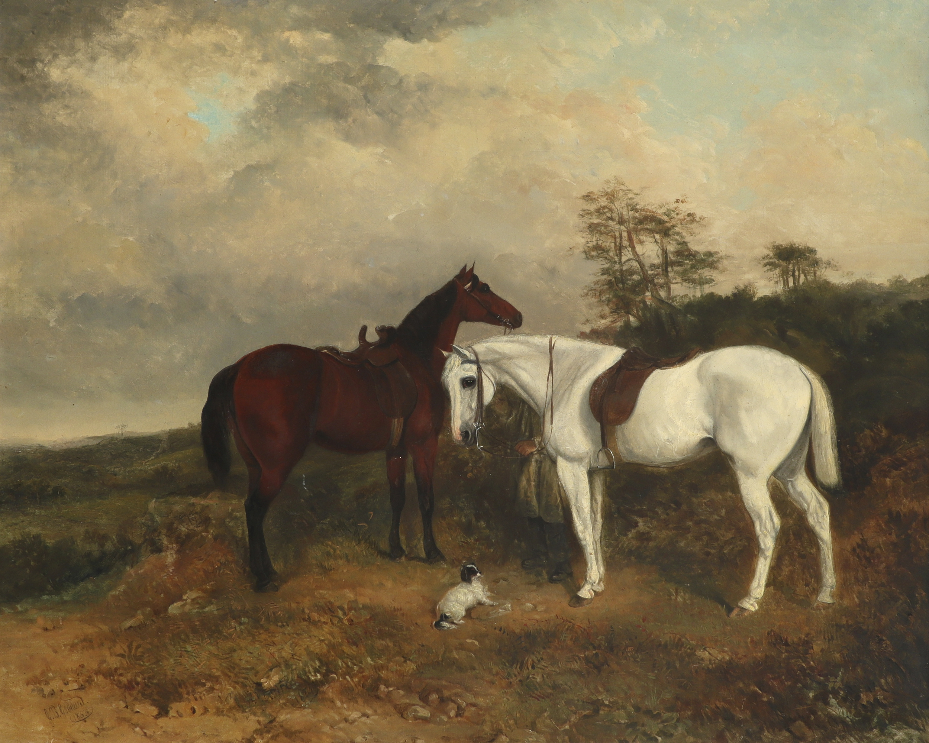 George Bouverie Goddard (1832-1886) Two hunters and a spaniel in a landscape Signed and dated...