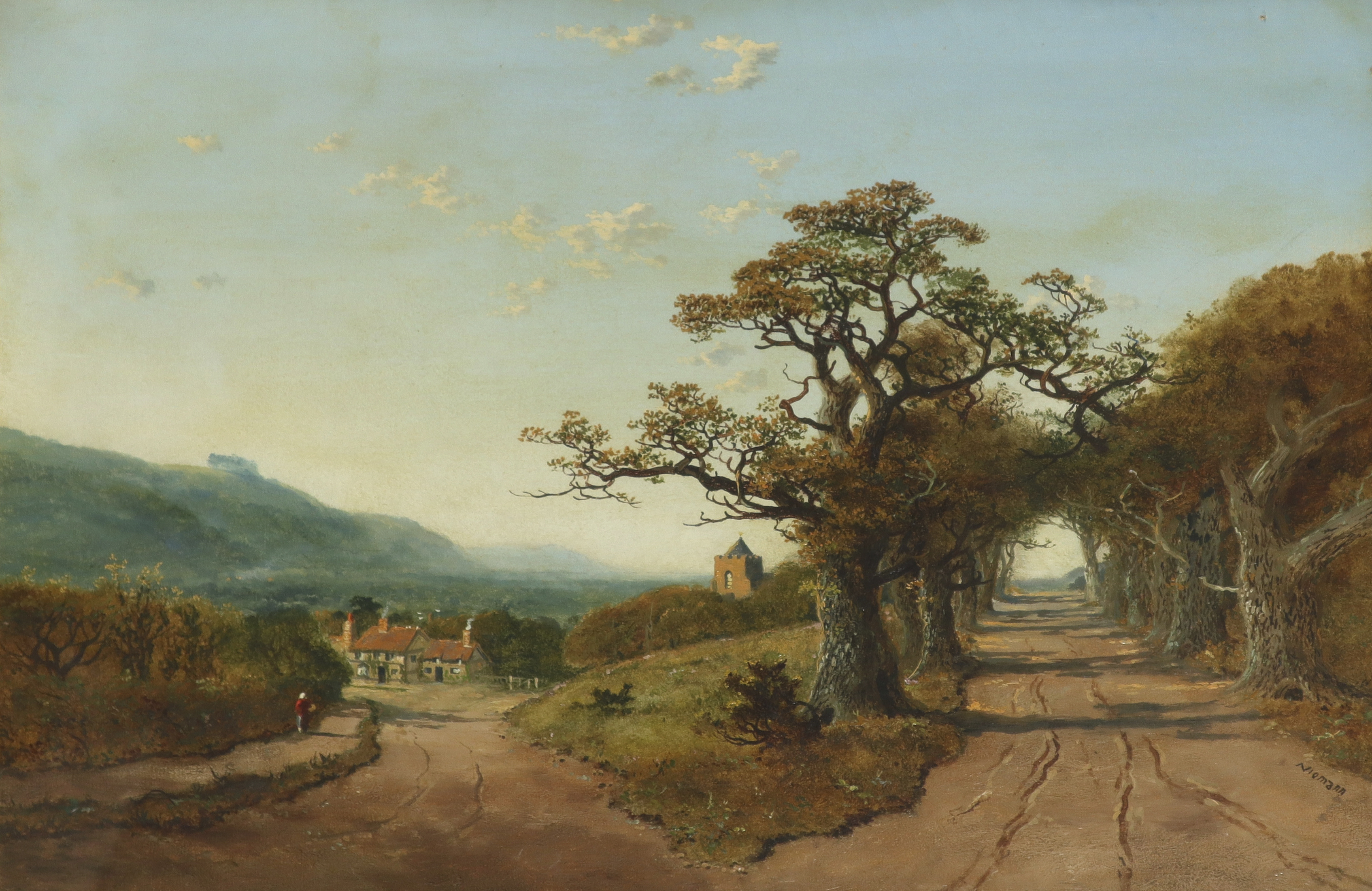 An avenue of trees near Kirkby Overblow, Yorkshire; A traveller on the road near Kirkby Overblow, Yorkshire