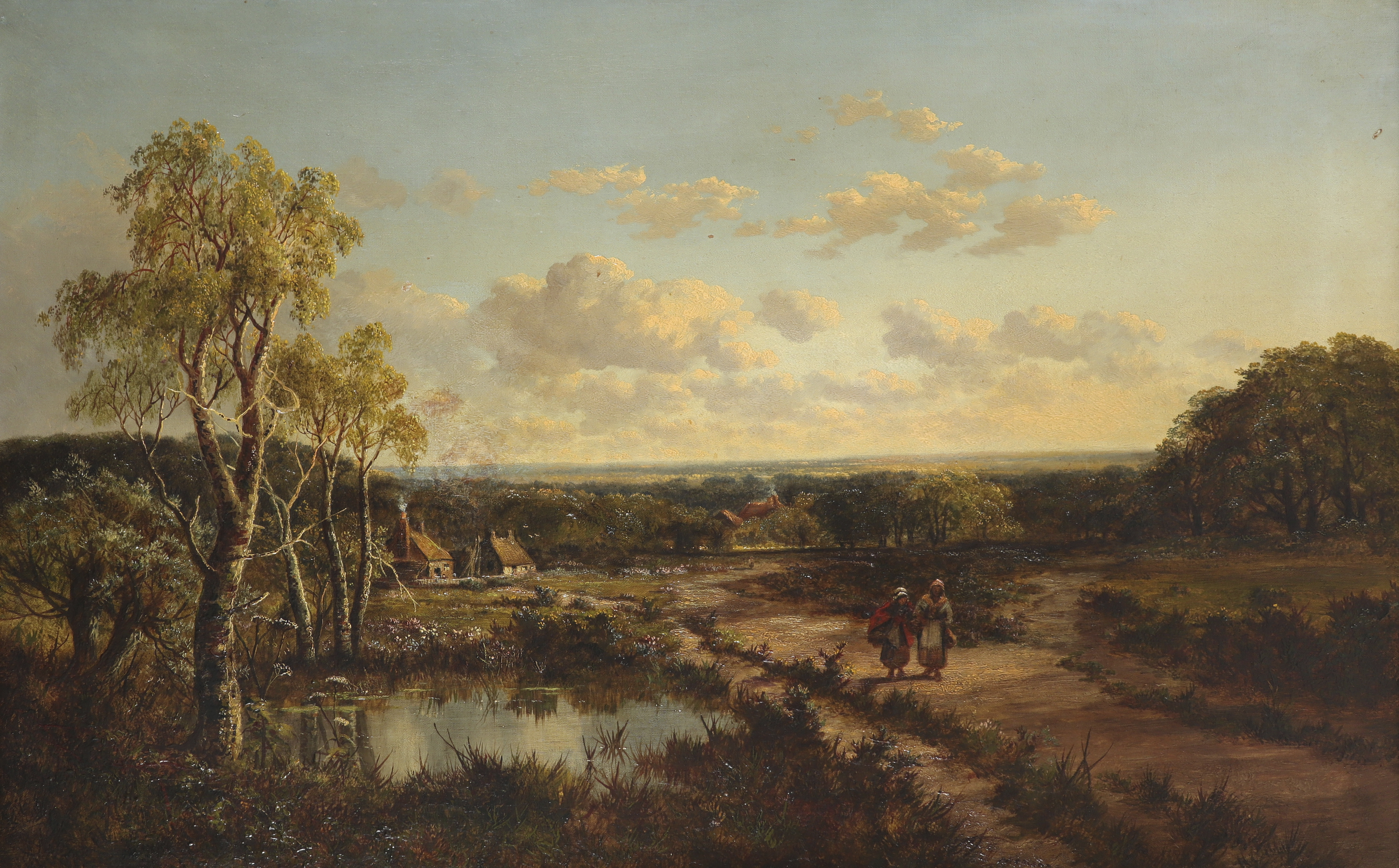 Edward H. Niemann (act. 1863-1867) Landscape with figures walking by a pond Signed Oil on canvas...