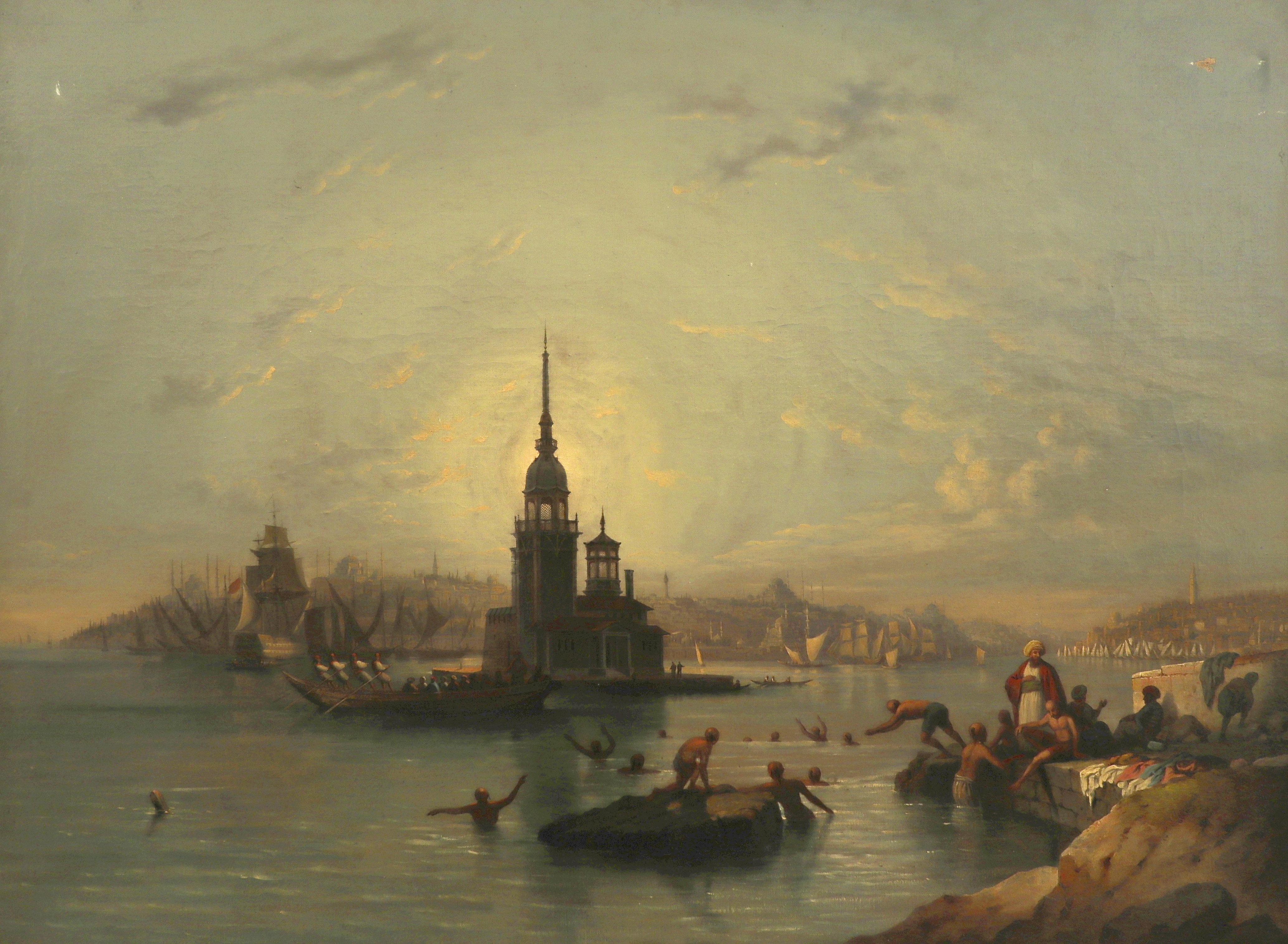 A view of Constantinople, with bathers by Leander's Tower