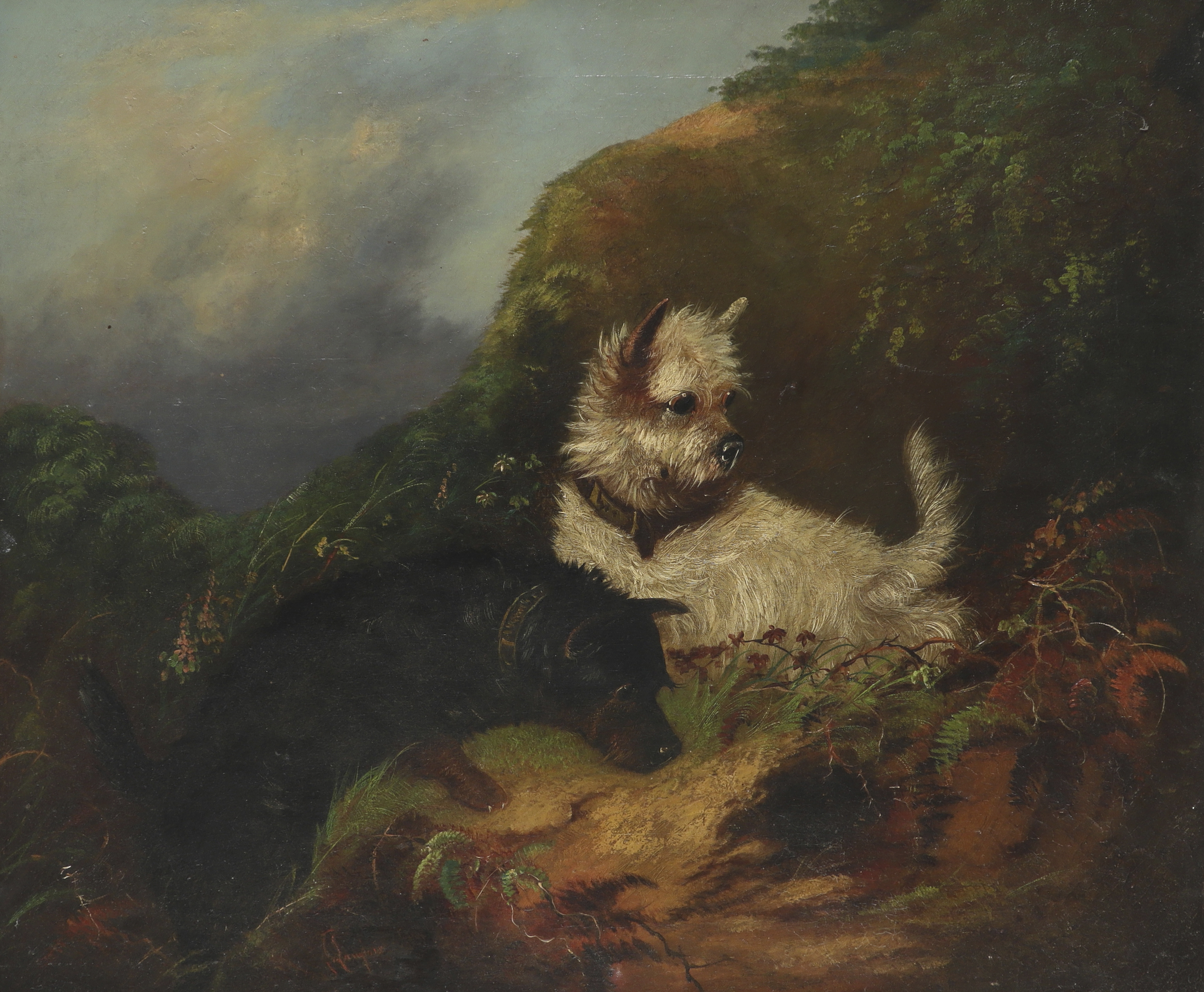 J. Langlois (c.1855-1904) Two terriers rabbiting Signed Oil on canvas 51.1 x 61.3cm; 20 x 24¼in...