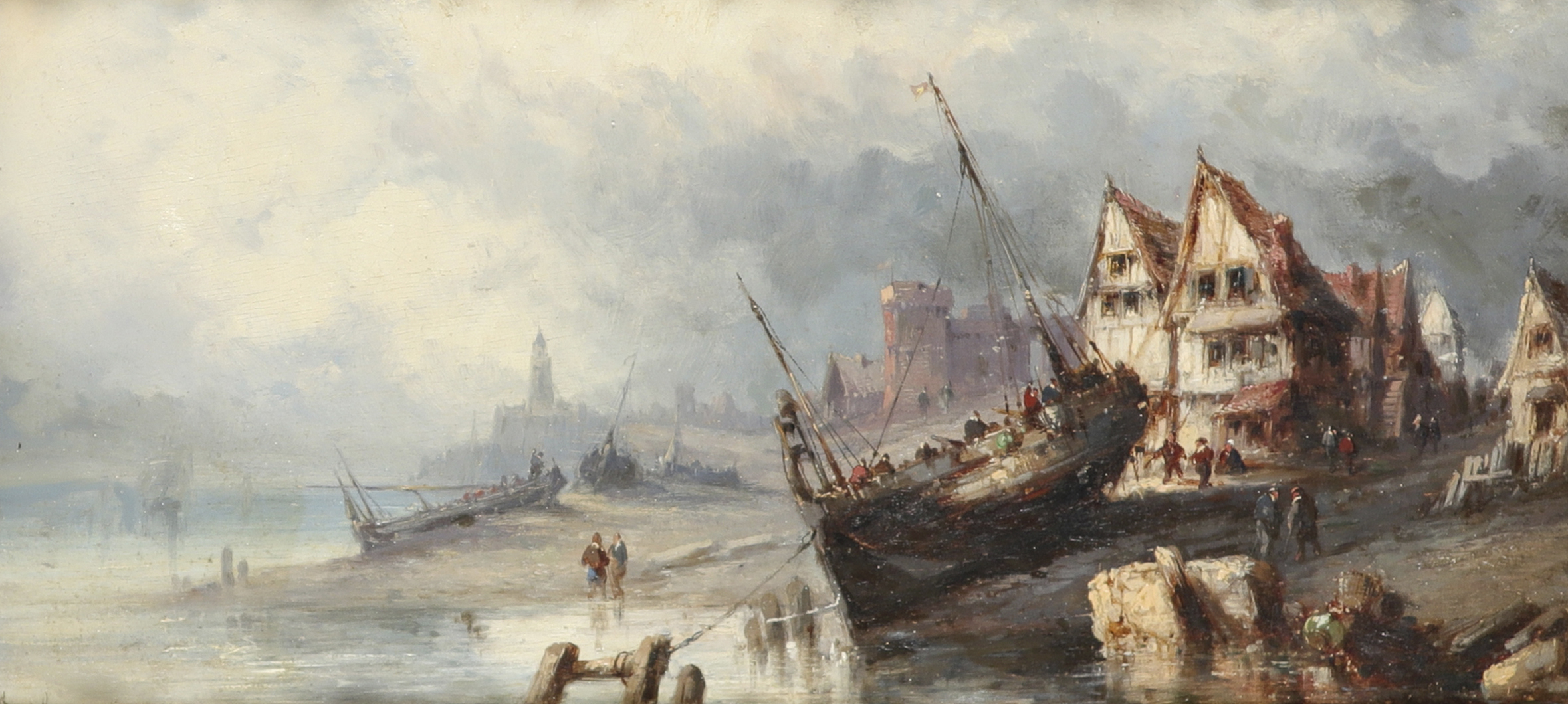 André Foneche (French 1851-1942) Coastal town with beached fishing boats Signed and dated 1888...