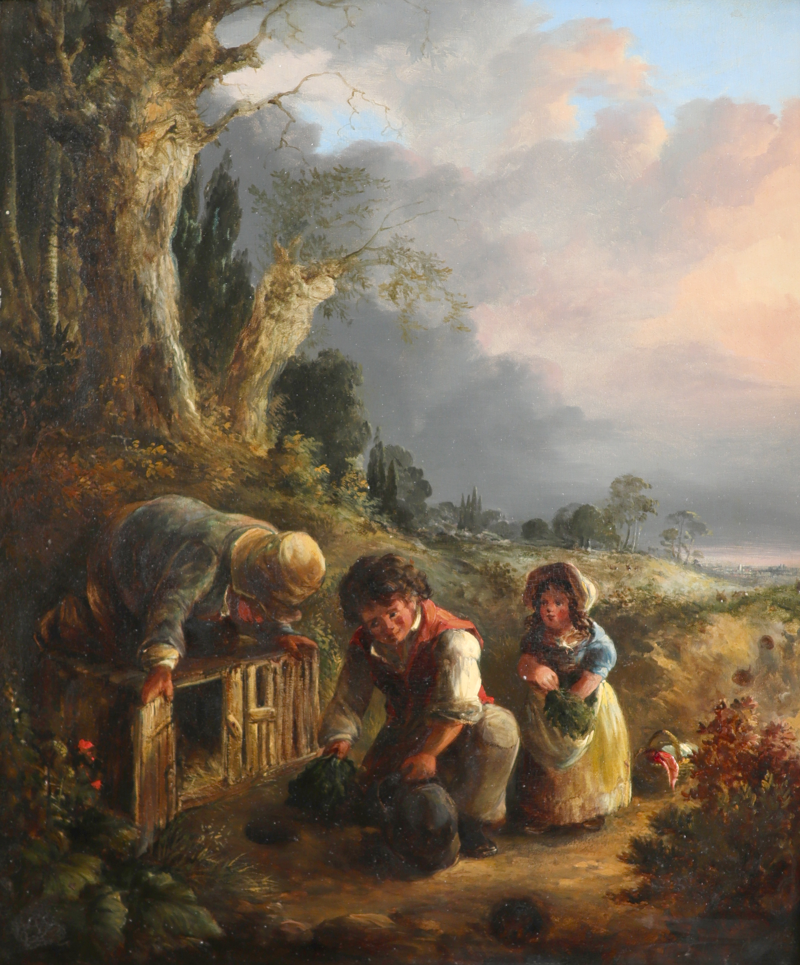 James Bateman (1814-1849) The young rabbit catchers Signed and dated 1841 Oil on panel 35.4 x...
