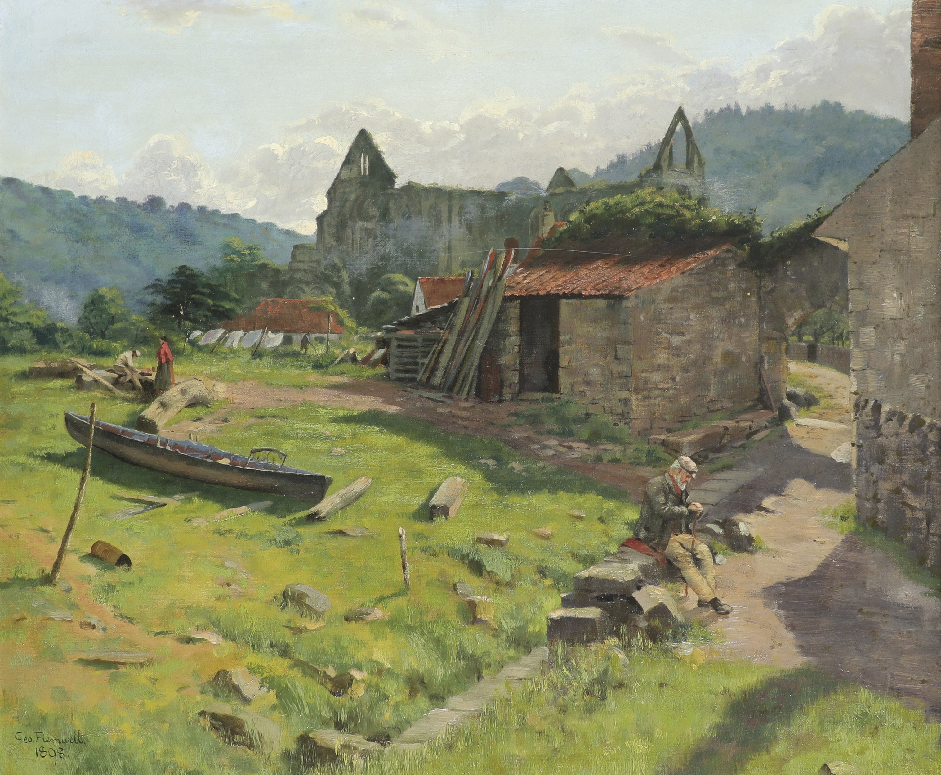 Signed and dated 1898, and further inscribed TO MR + MRS STUBBS FROM G.FLEMWELL CHRISTMAS 1898 to stretcher