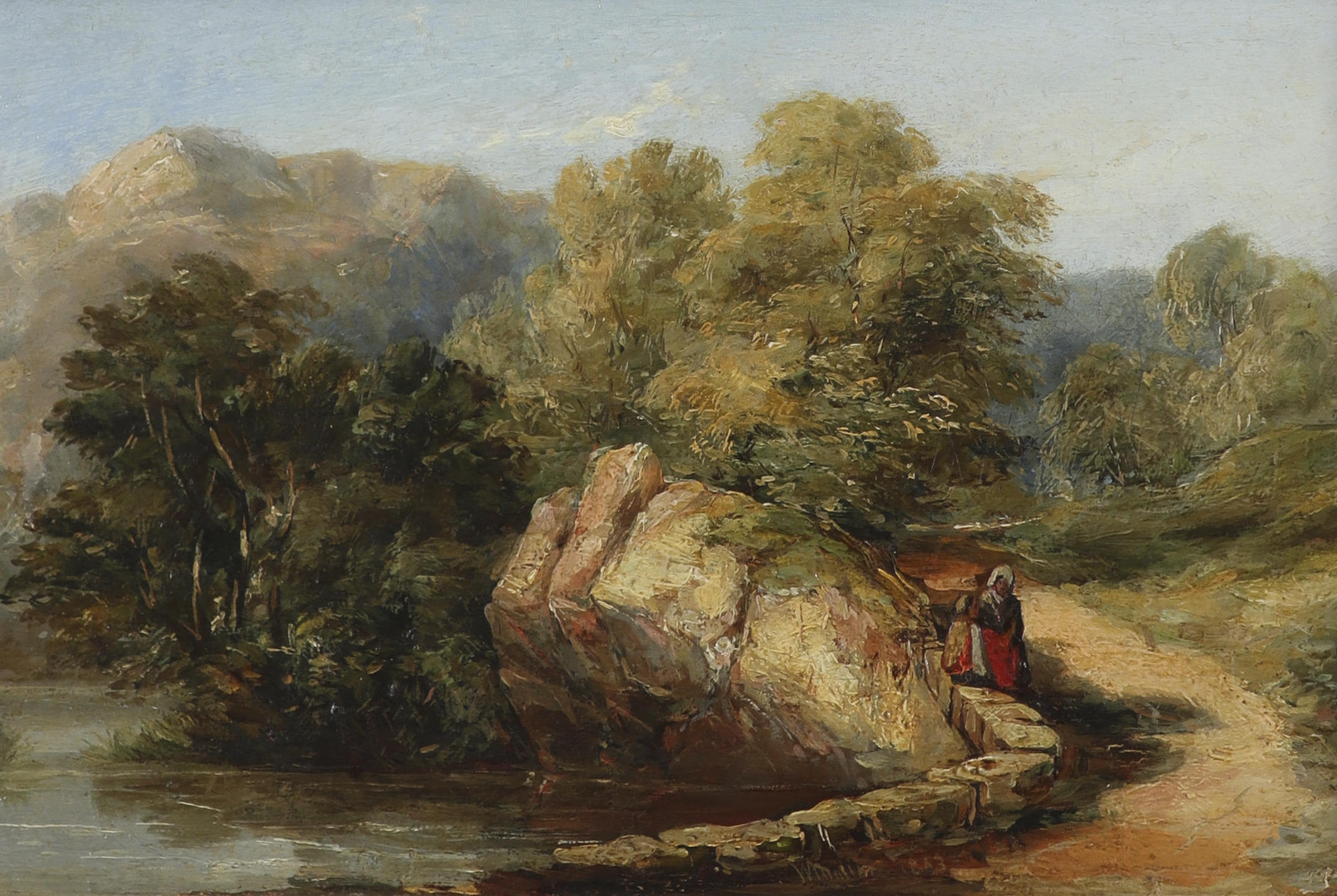 William James Müller (1812-1845) River landscape with two women on a path Signed and dated 1843...