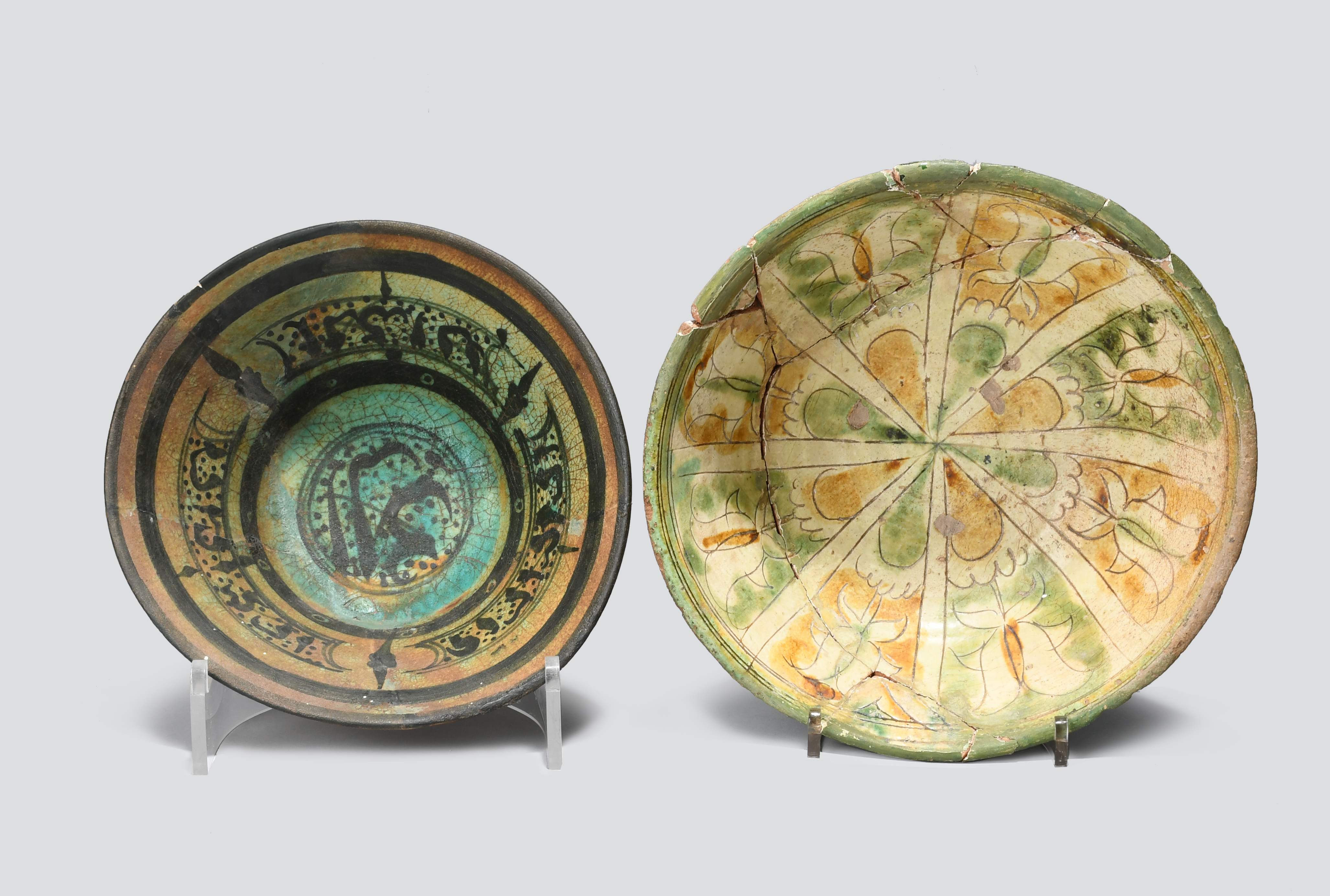 and a Persian sgraffito pottery bowl, 23cm diameter. (2)