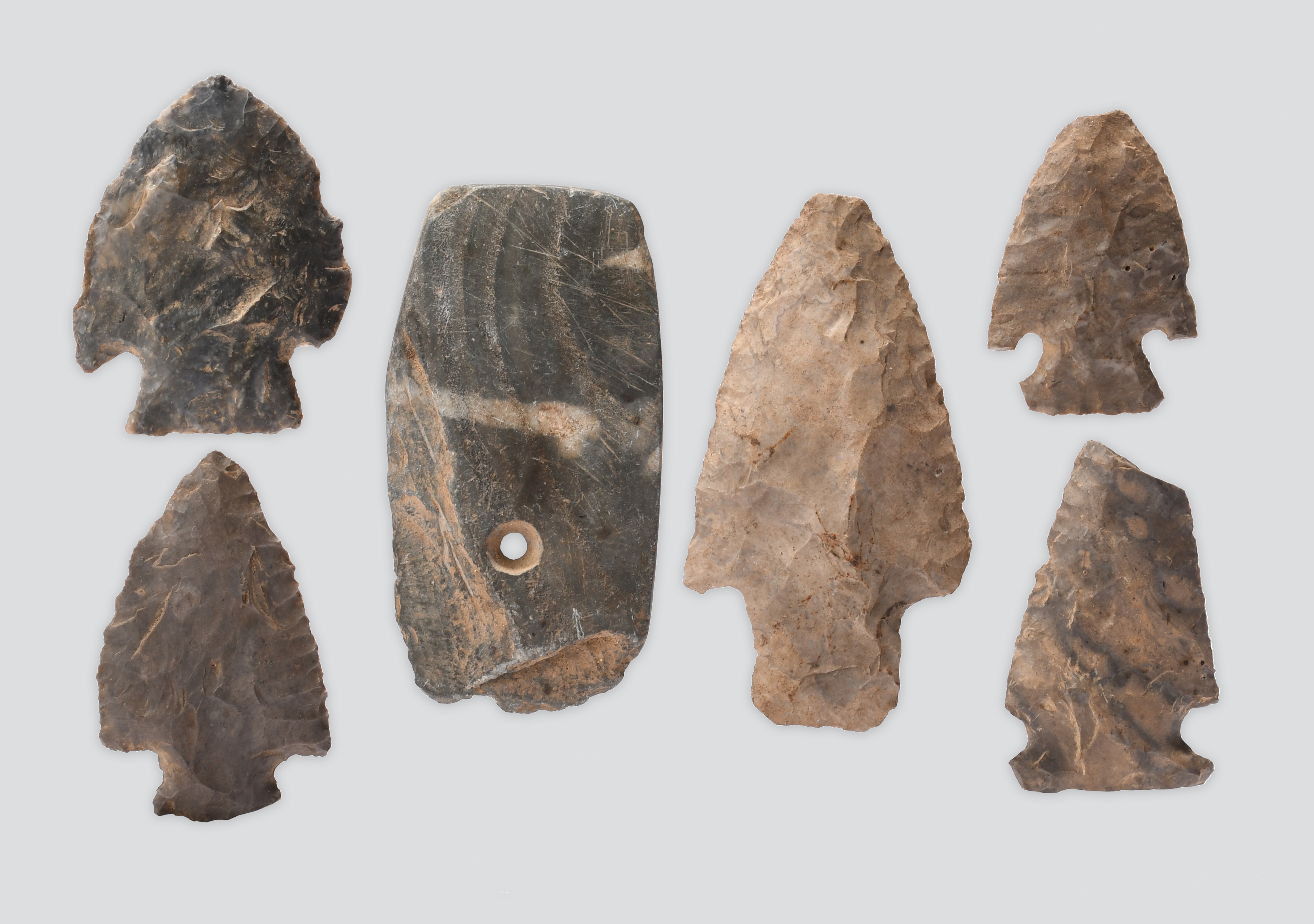Five Neolithic flint arrowheads