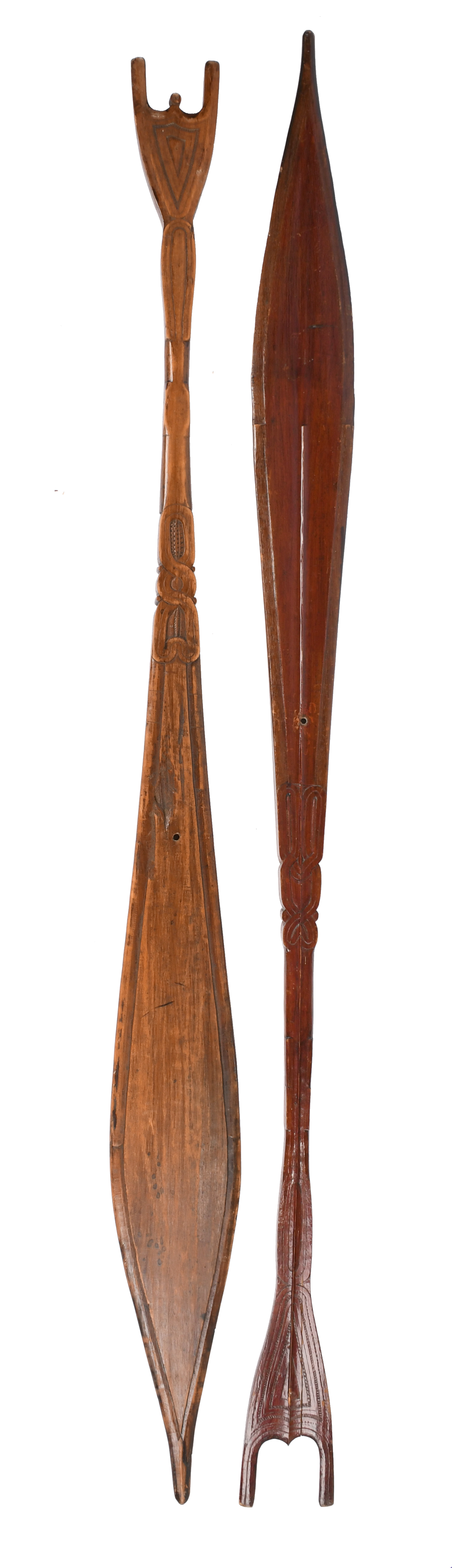 Two Surinam paddles South America 118.7cm and 123cm long. (2)
