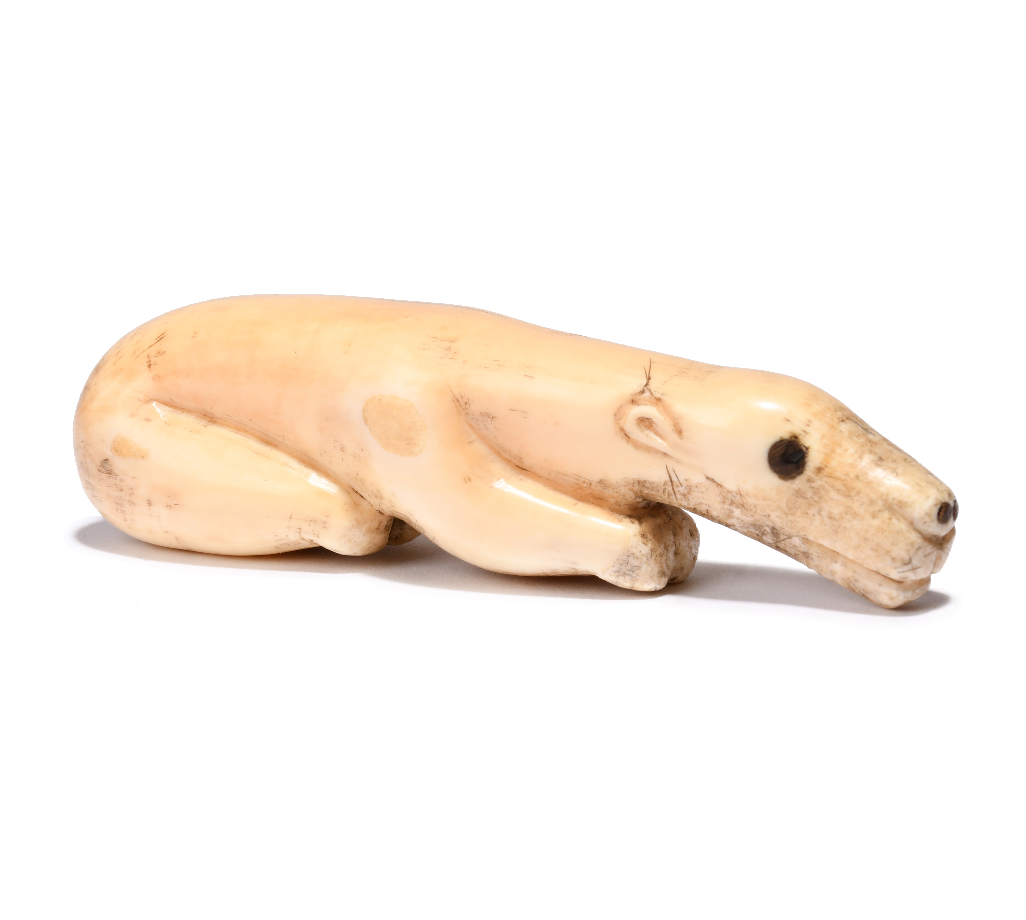 λAn Inuit polar bear amulet Alaska walrus ivory with baleen