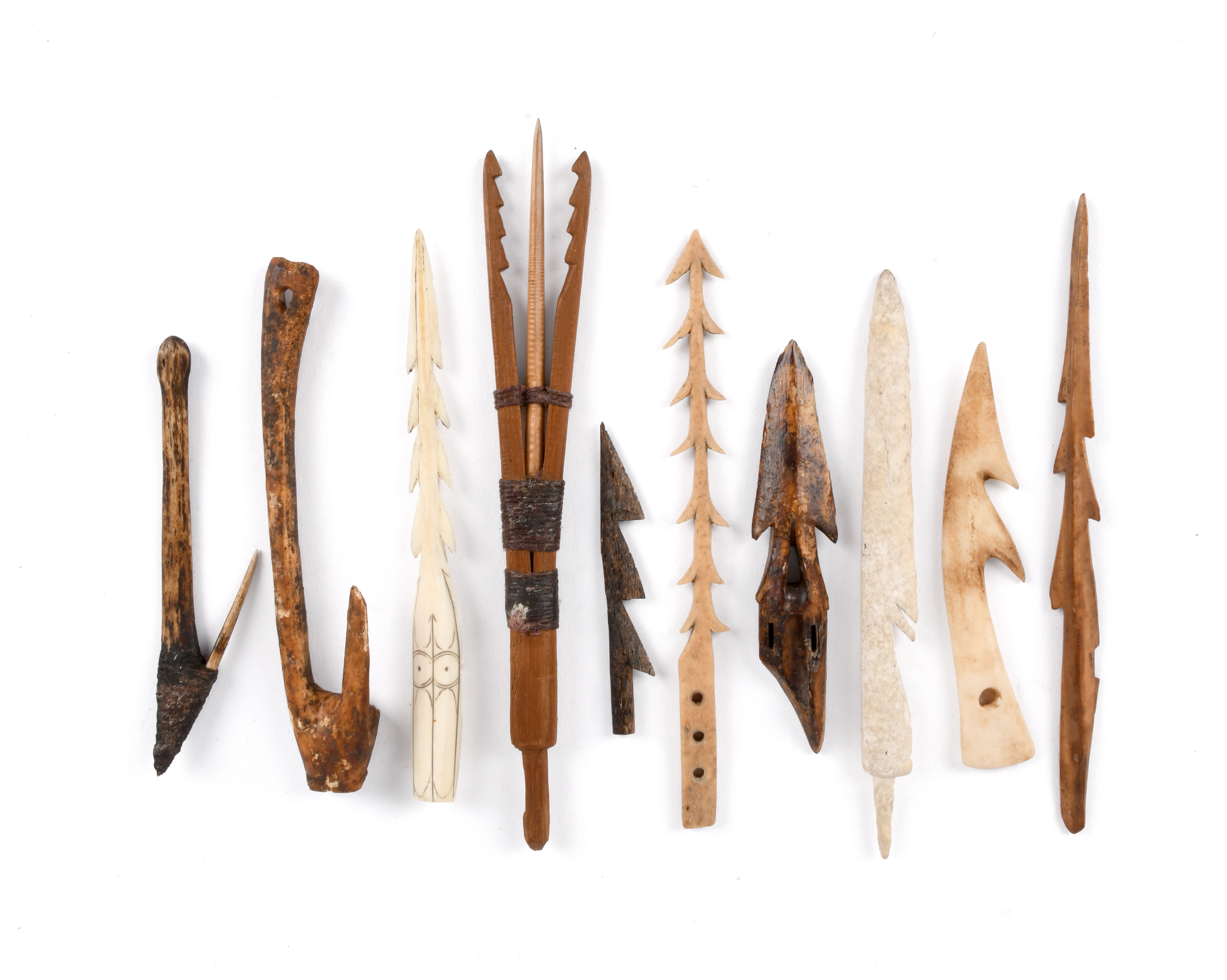 λSeven Inuit harpoon heads Arctic marine ivory and bone