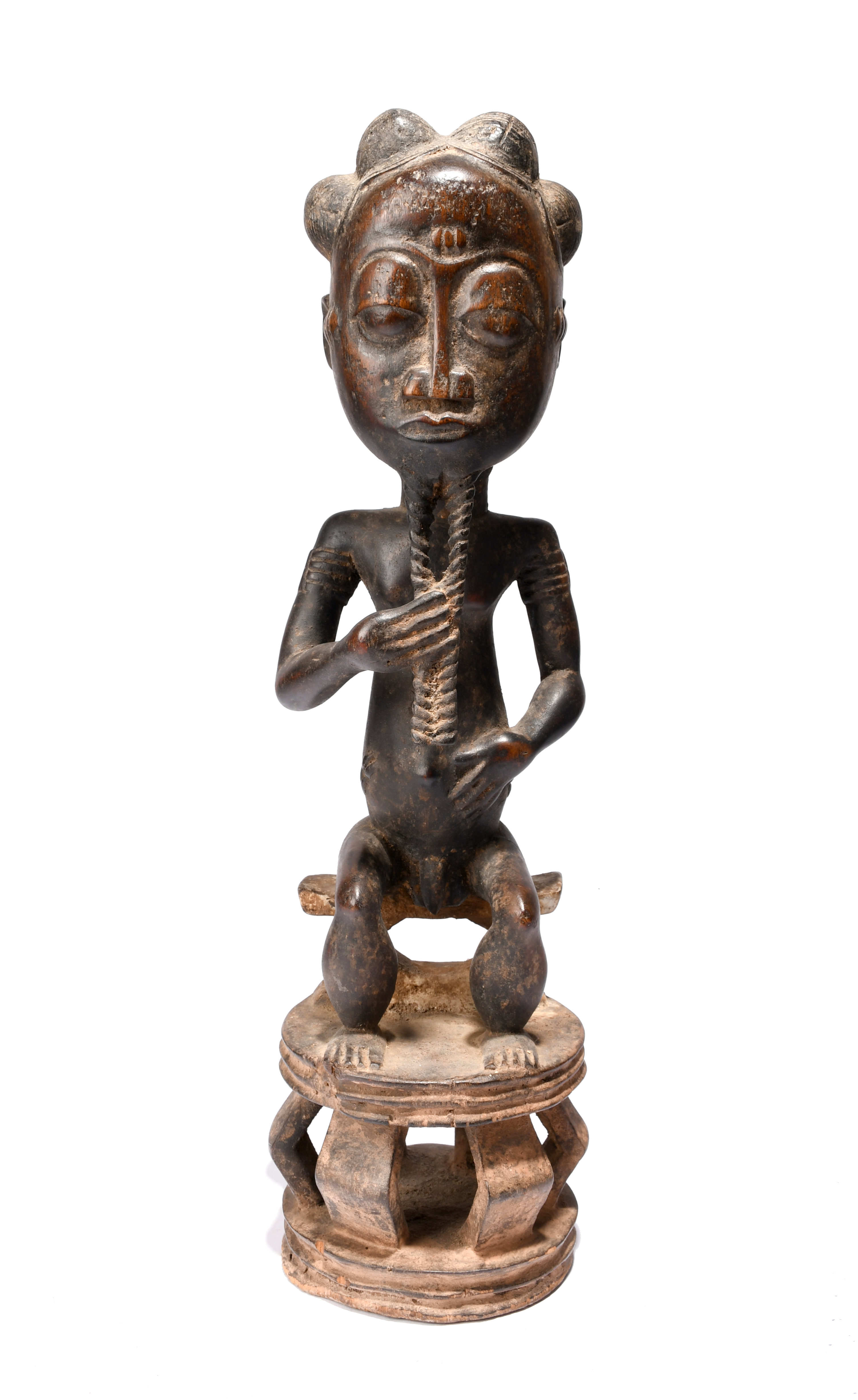 A Baule seated male figure Ivory Coast with pigment