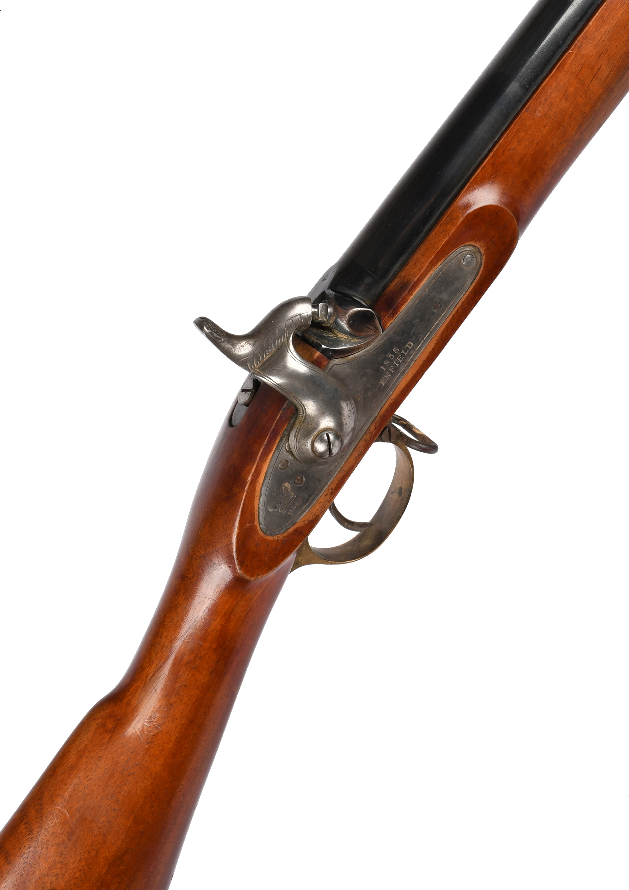 A replica 1858 pattern percussion gun, serial number 1046, 15mm (24 bore) smooth bored barrel 32 in., of military configuration in all other regards, including ladder back sight, bayonet lug, full stock with brass furniture, and steel jag head clearing rod. Section 2 - SGC or RFD required to purchase.