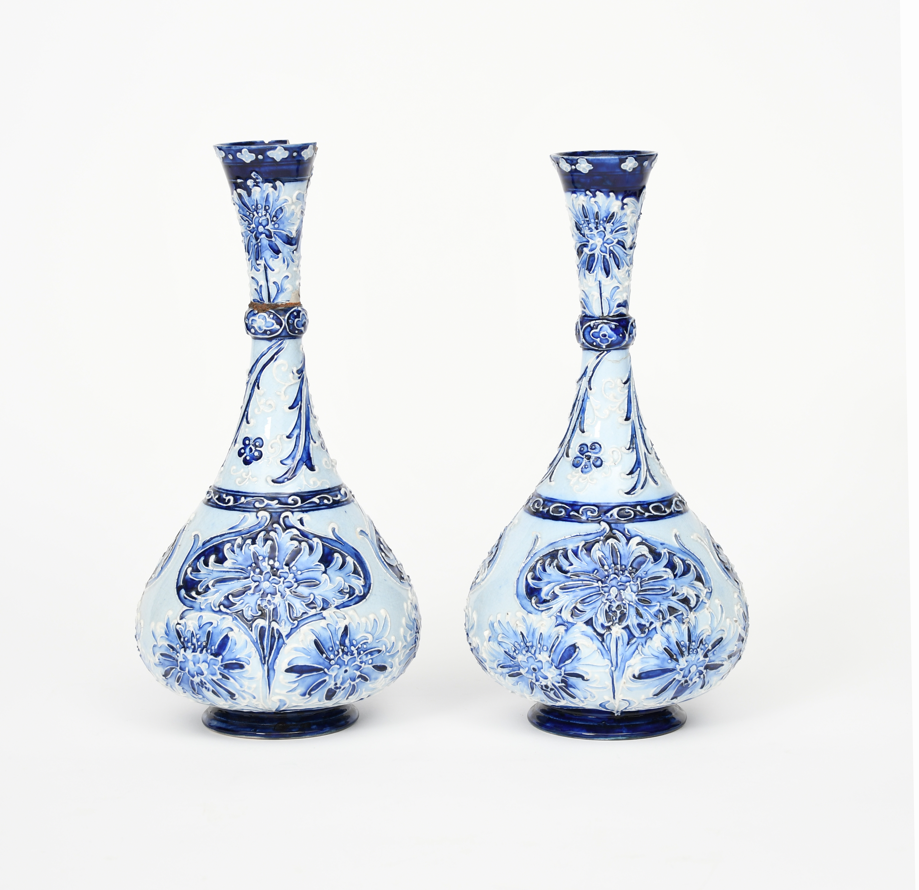 'Cornflower' a pair of James Macintyre & Co Ltd solifleur vases designed by William Moorcroft