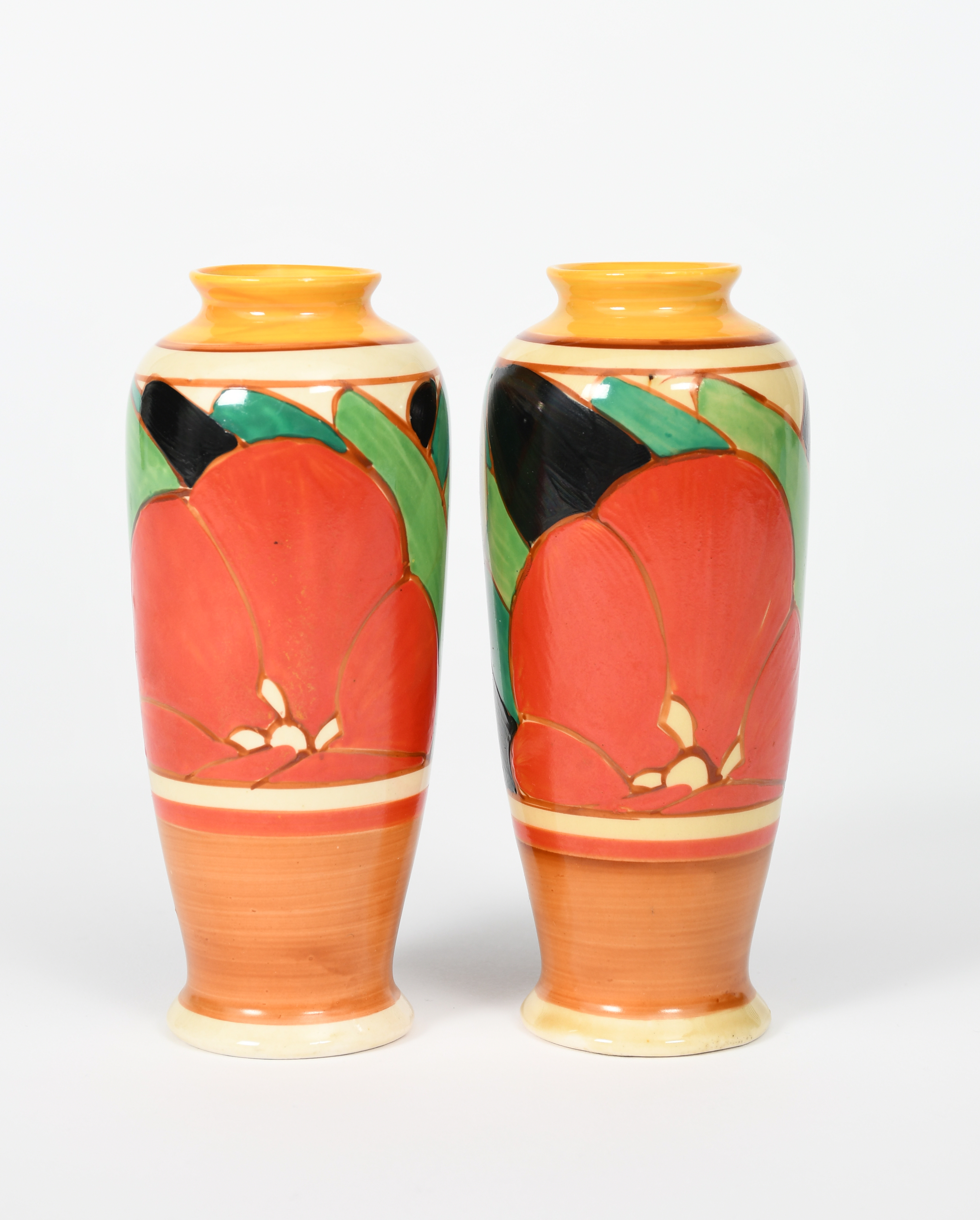 'Red Gardenia' a pair of Clarice Cliff Bizarre vases