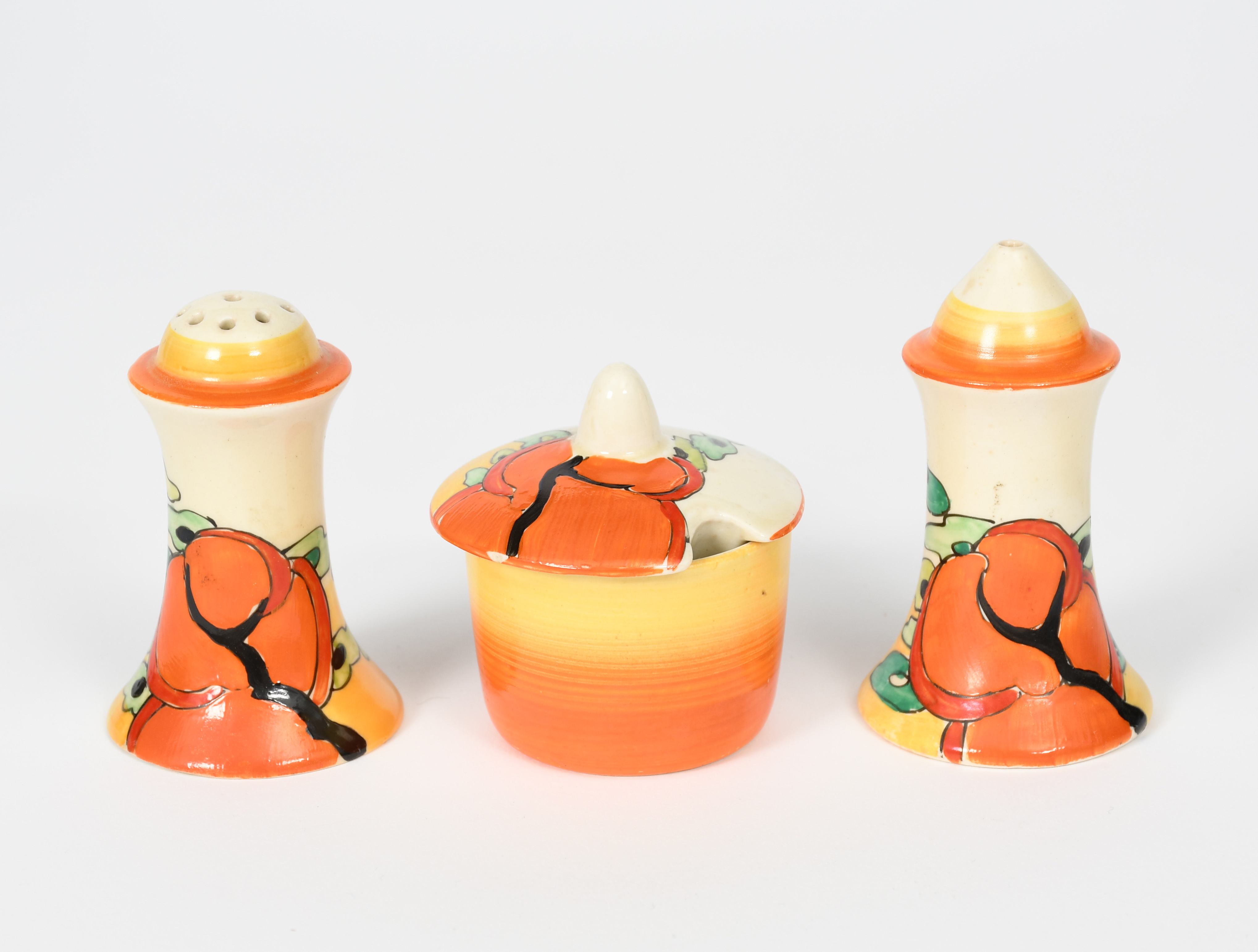'Orange Erin' a Clarice Cliff Bizarre cruet set