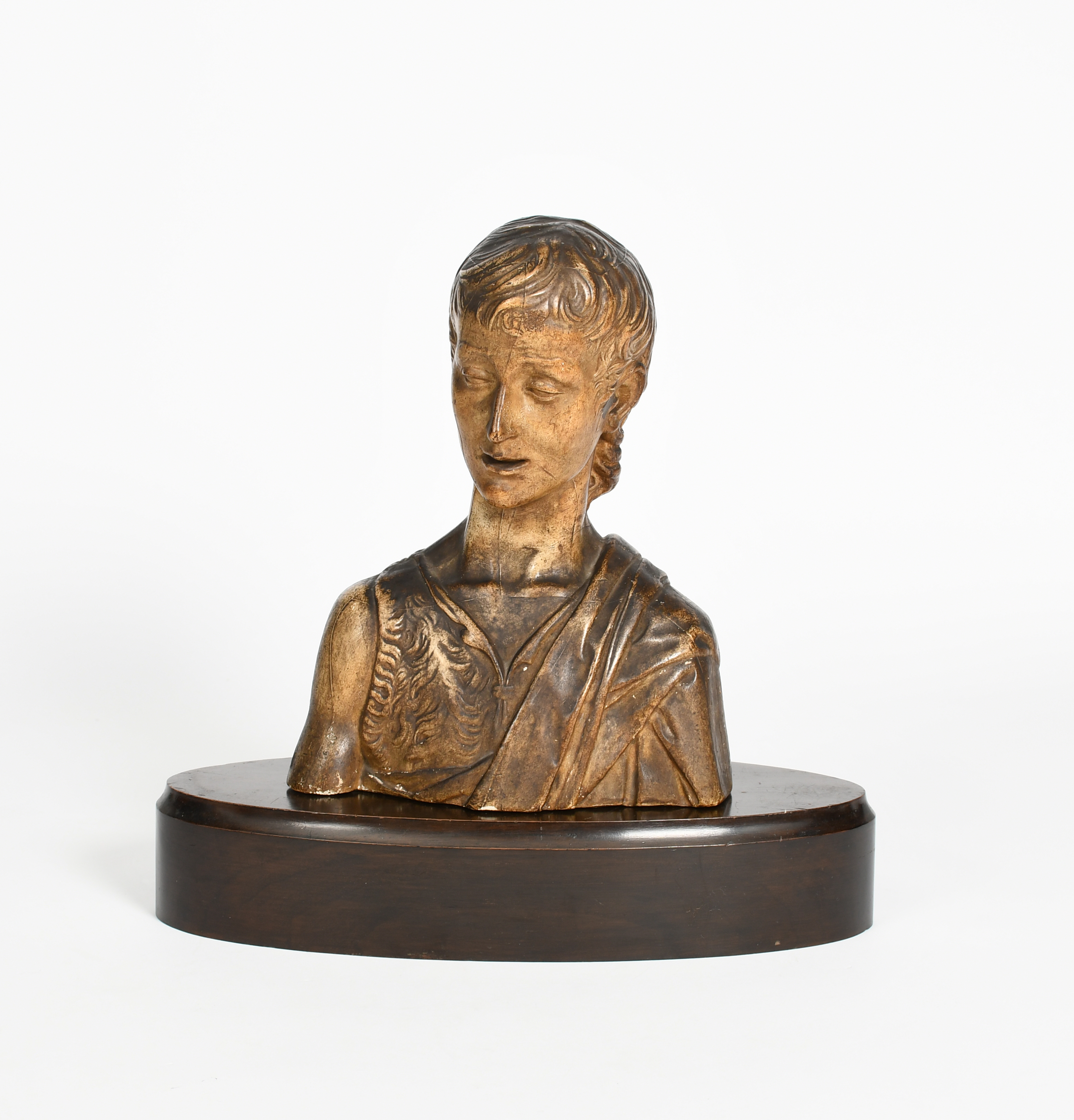 a patinated plaster bust published by Pietro Paulo Caprioni, Boston, on elliptical wooden base