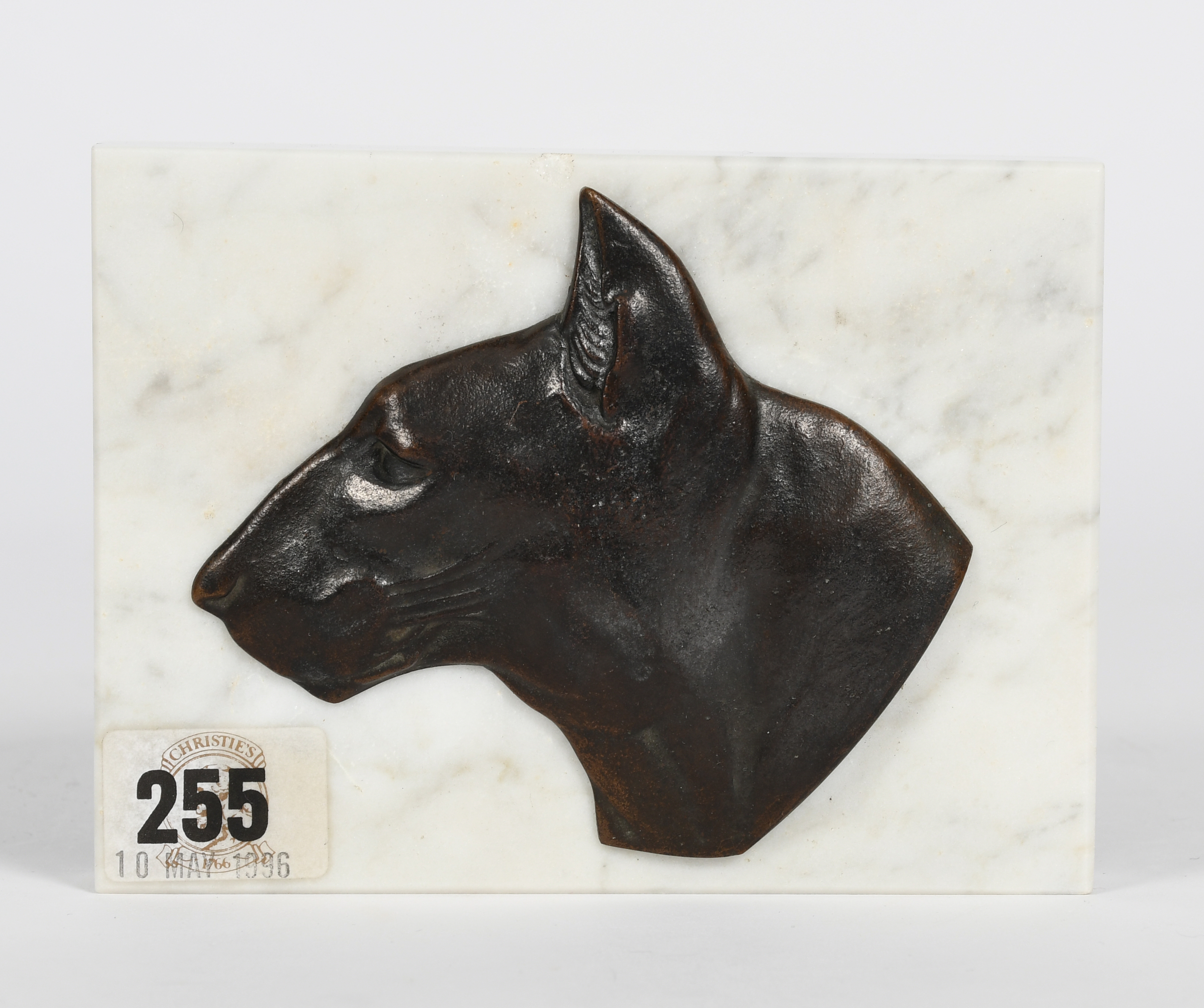 patinated bronze panel on rectangular marble