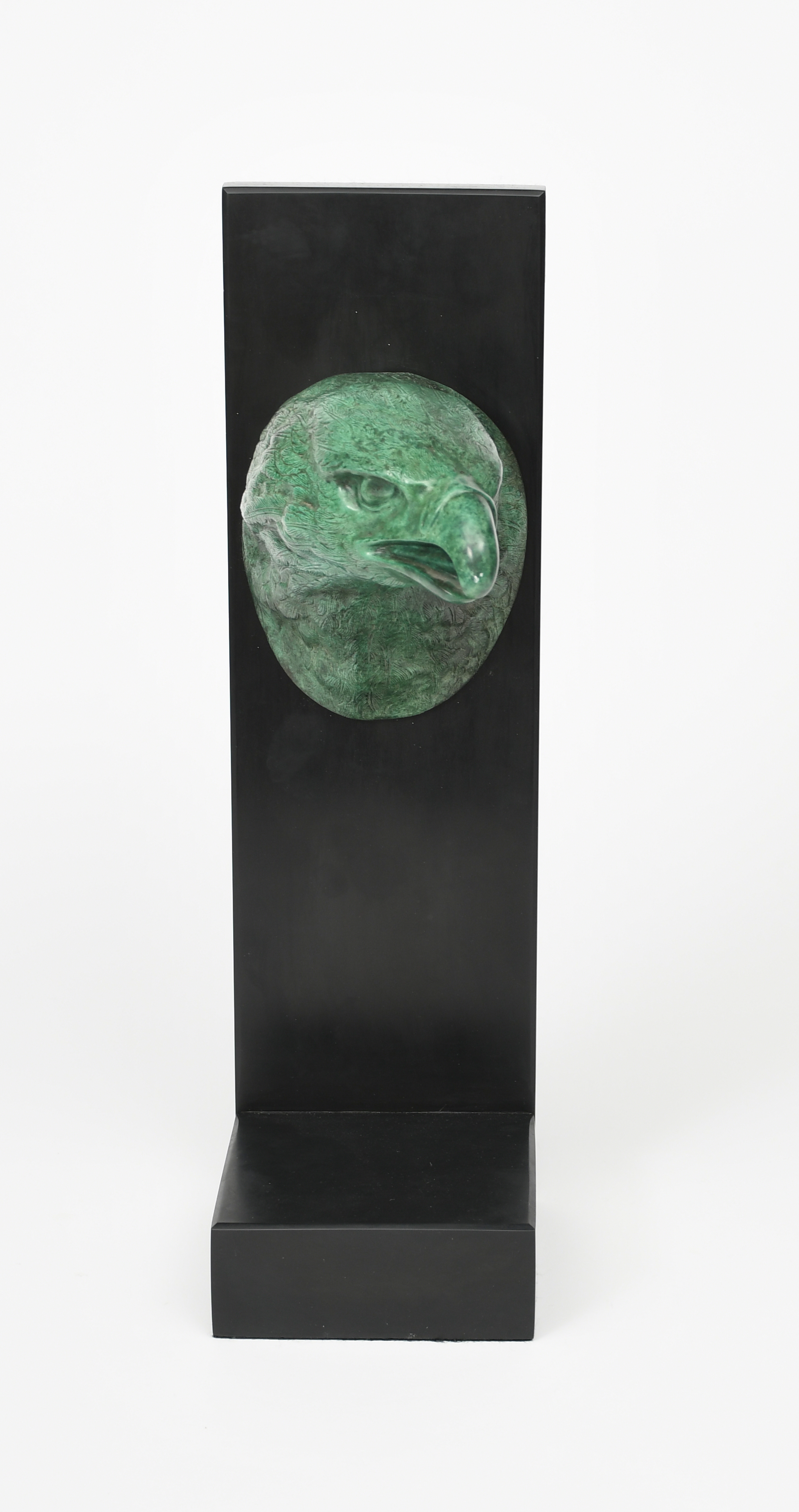 Anon Eagle's Head verdi gris bronze on polished black slate base and stand