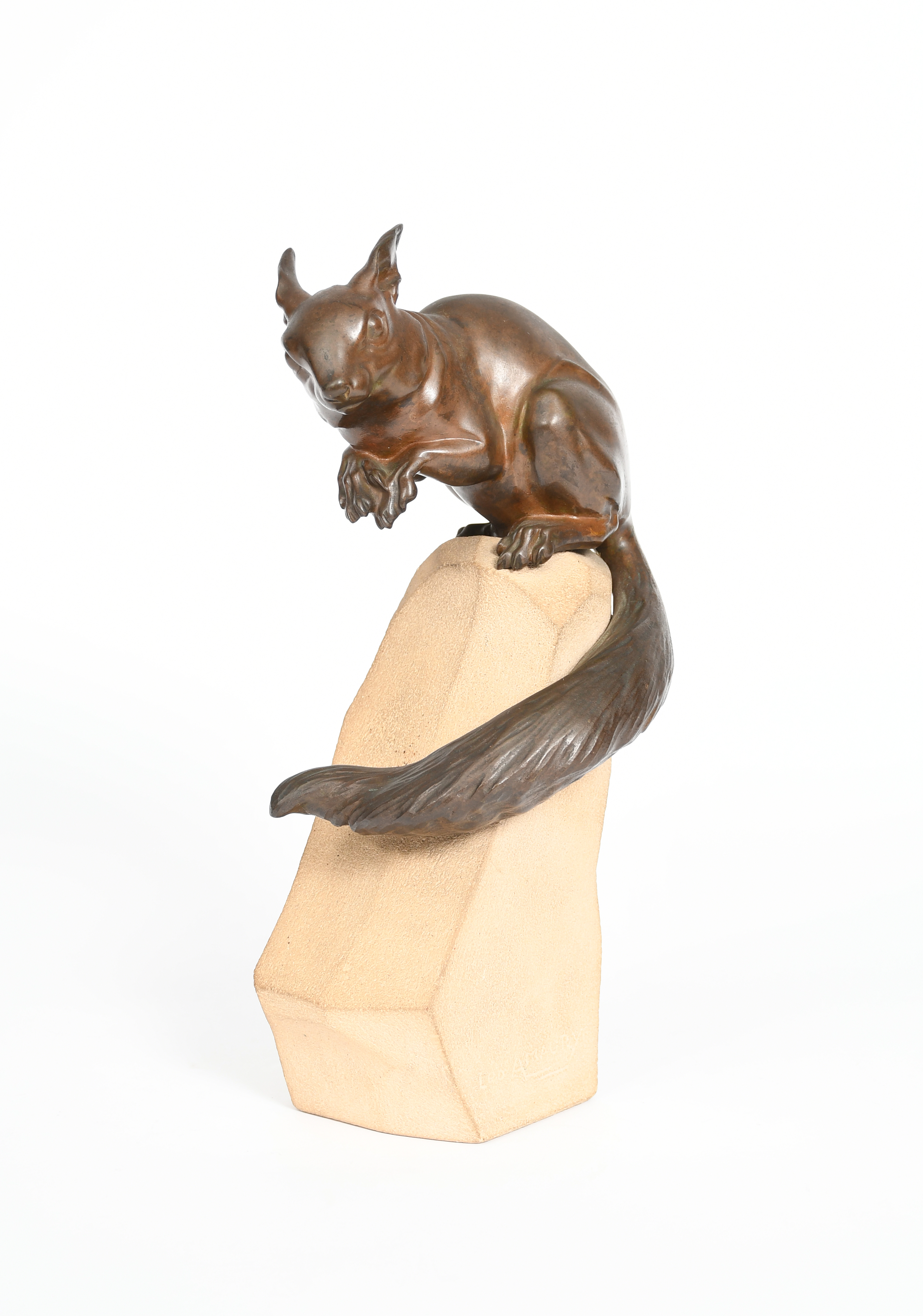 Leo Amaury (1885-) Squirrel patinated bronze on stone base incised Leo Amaury