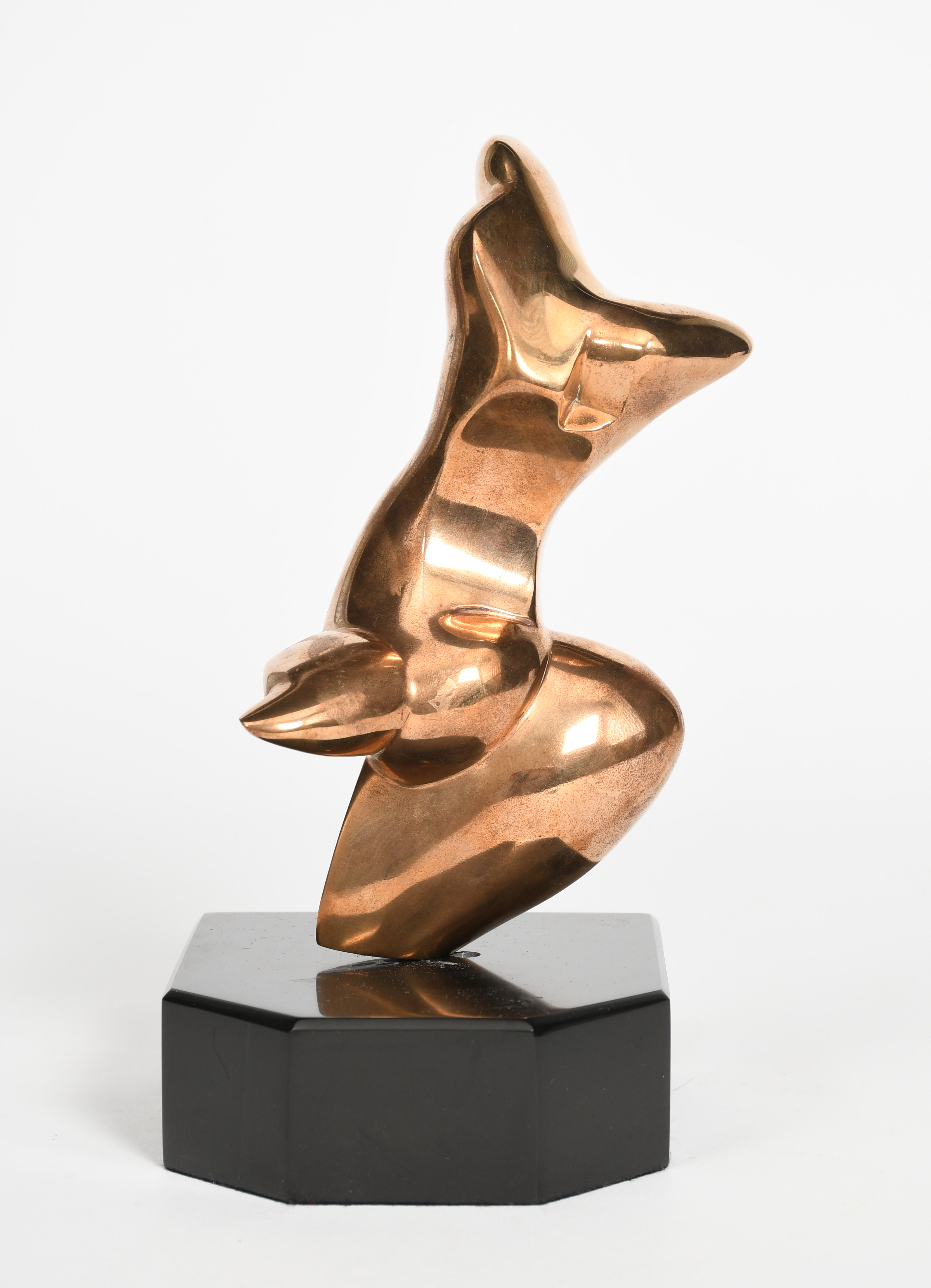 polished bronze on a polished slate base