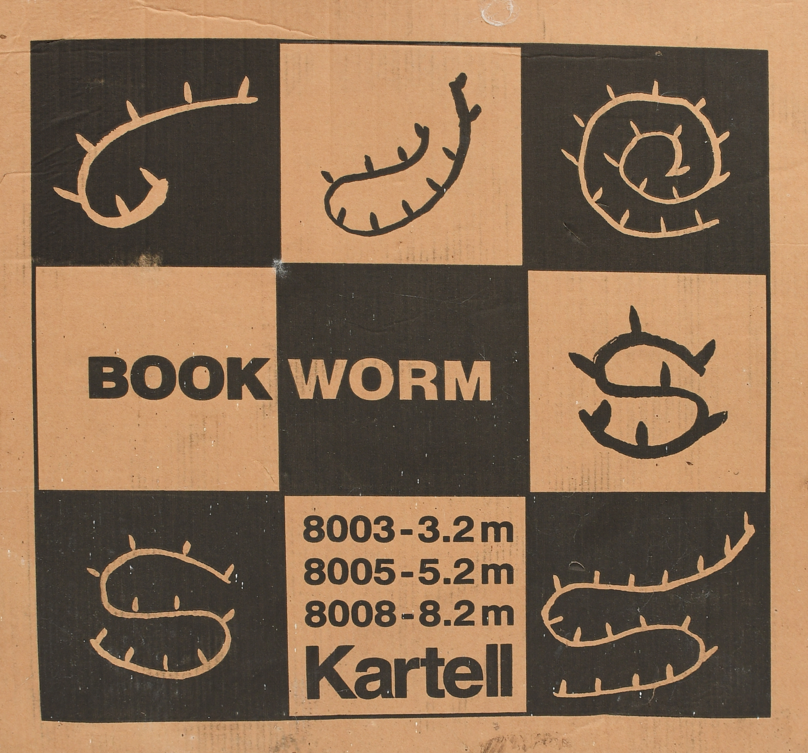 A Kartell Bookworm shelf system designed by Ron Arad, model no, 8003 C4, in original box, blue plastic box with printed makers details, 3.2 meters long