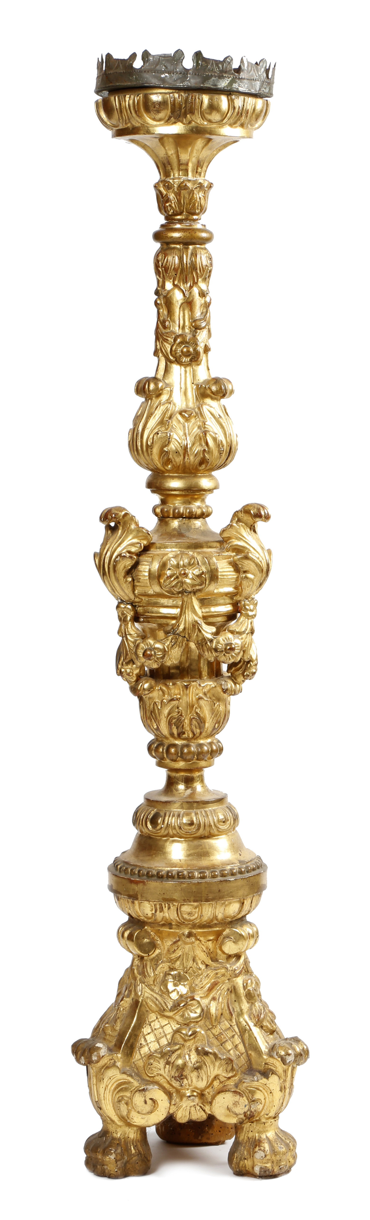 AN ITALIAN GILTWOOD ALTAR CANDLESTICK