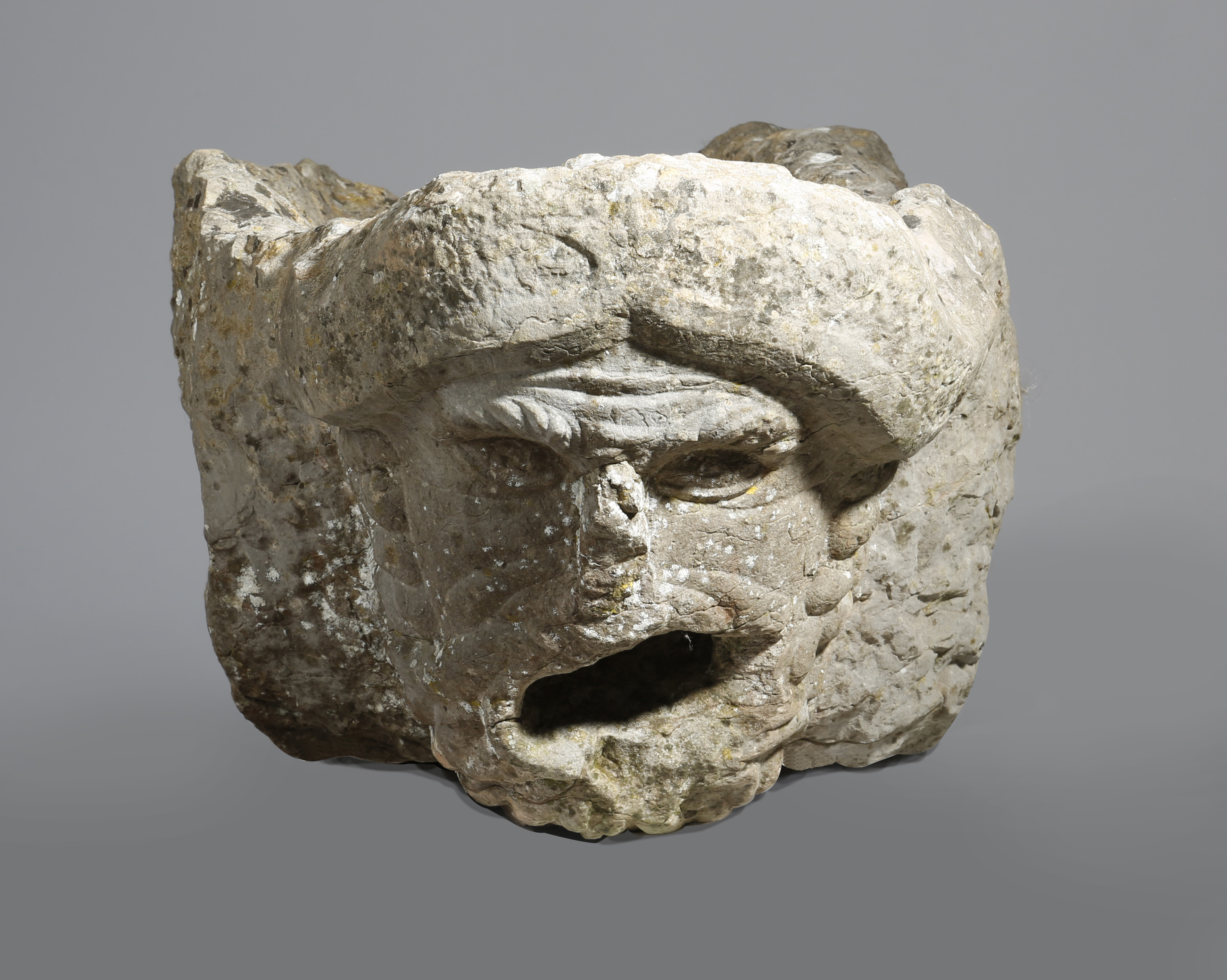 AN ITALIAN ISTRIAN STONE FOUNTAIN HEAD