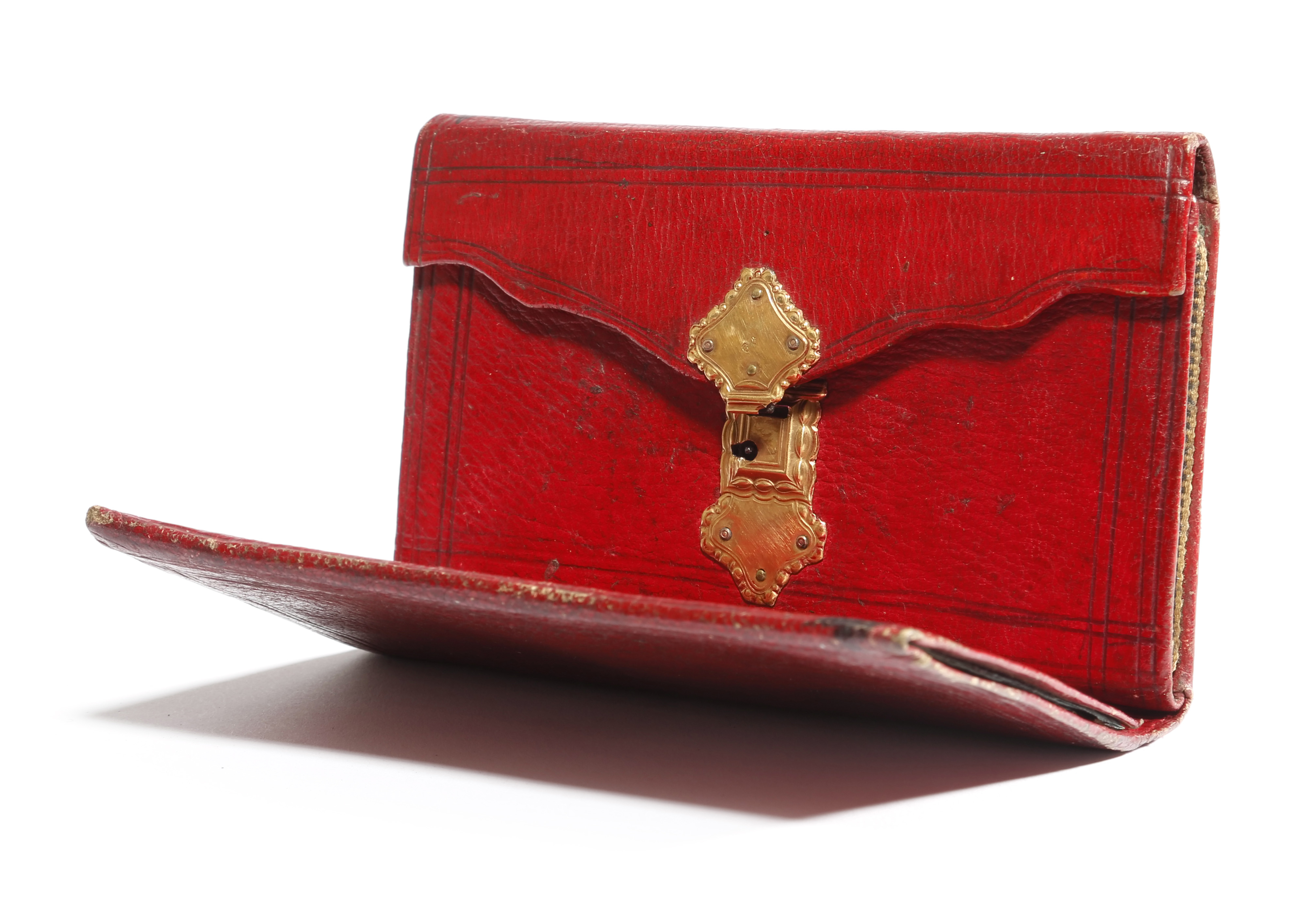 A FRENCH RED MOROCCO LEATHER AND GOLD MOUNTED PURSE THIRD QUARTER 18TH CENTURY the interior with...