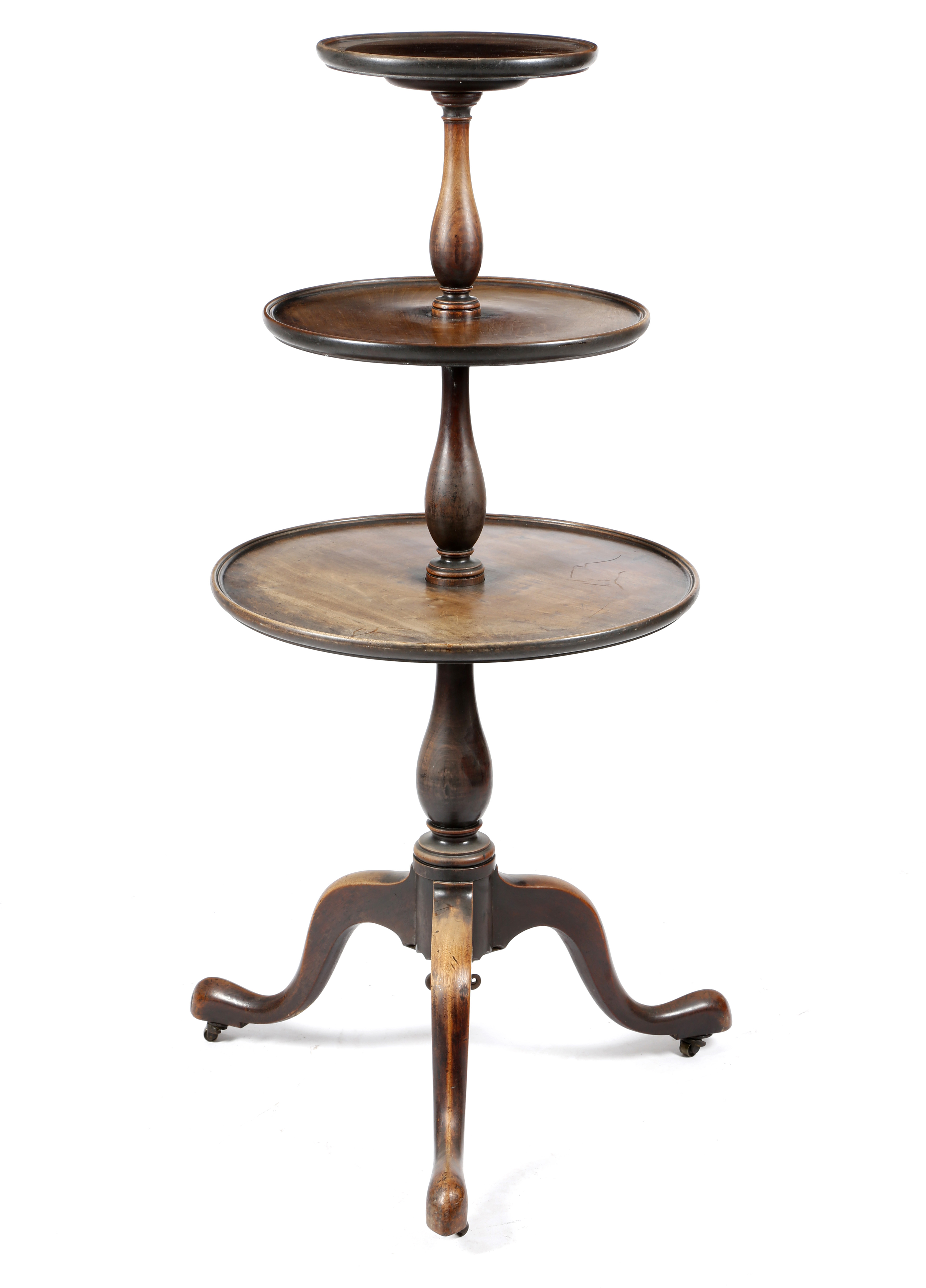 A GEORGE III MAHOGANY DUMB WAITER THIRD QUARTER 18TH CENTURY with three dished tiers