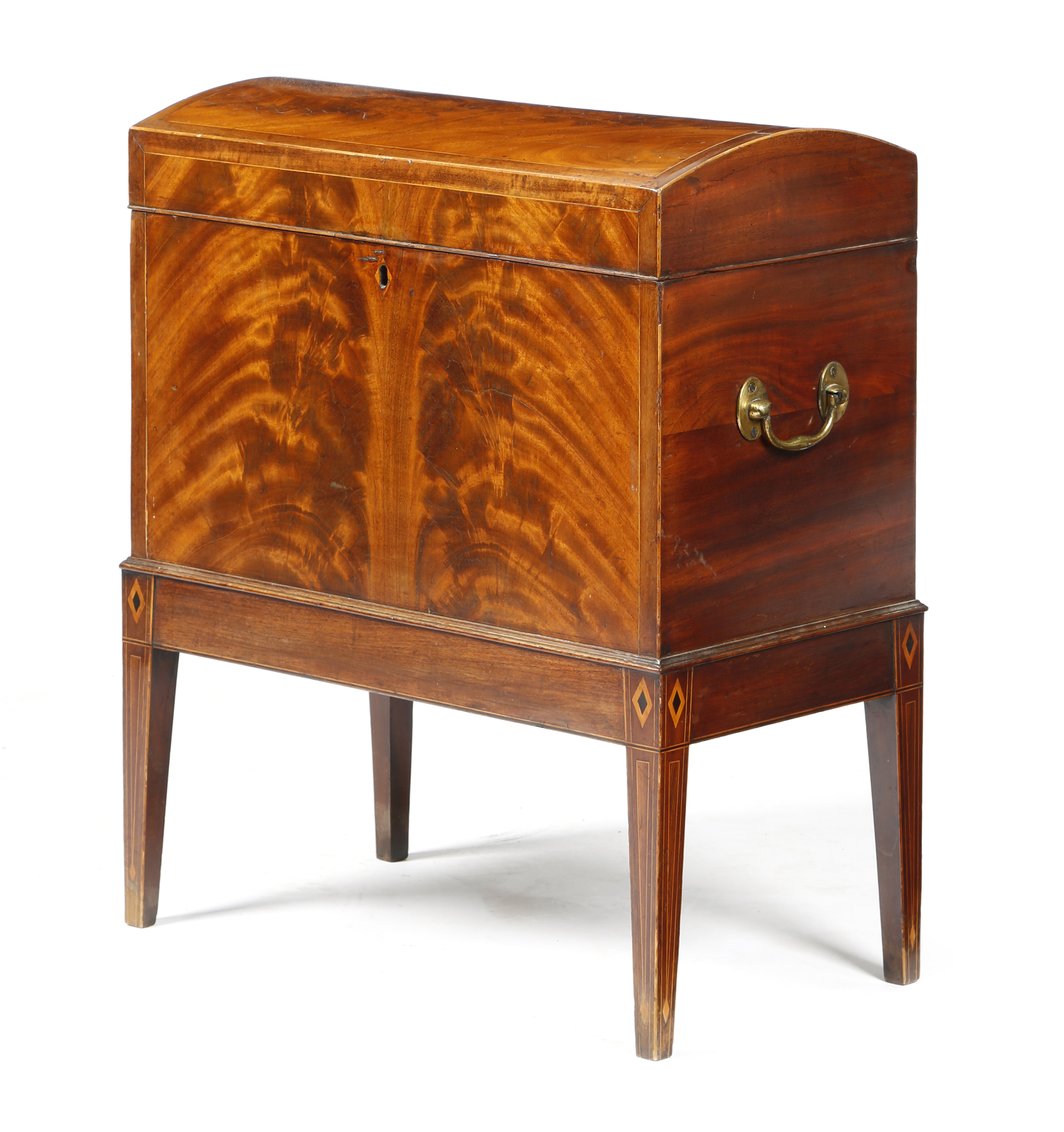 A LATE GEORGE III MAHOGANY CELLARET C.1800-10 inlaid with boxwood stringing