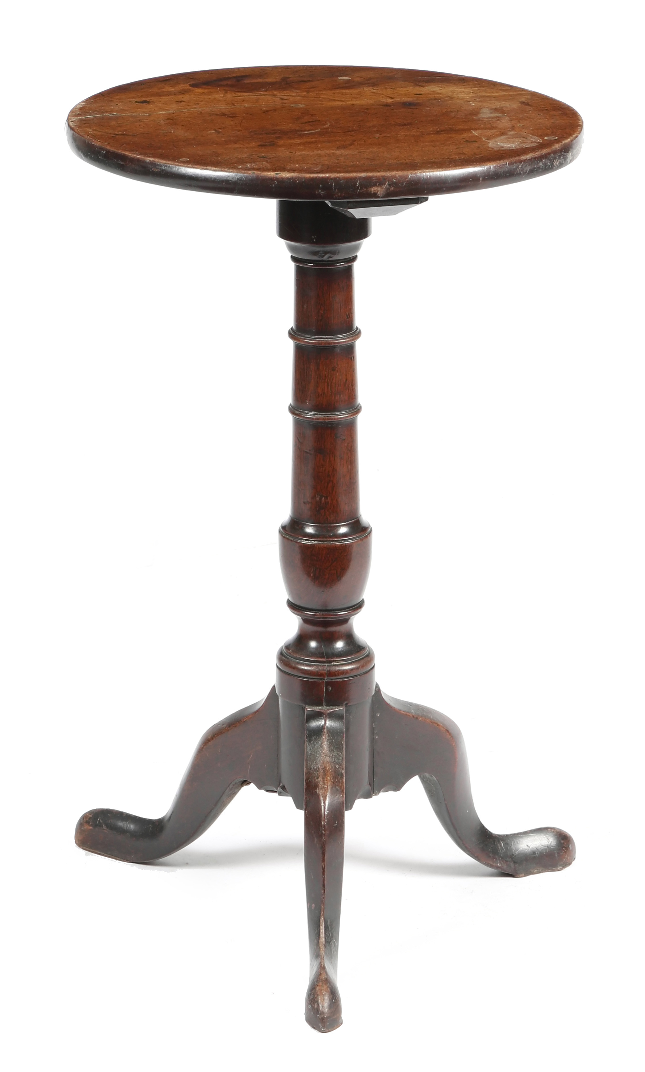 the circular fixed top on a ring turned baluster stem and cabriole legs
