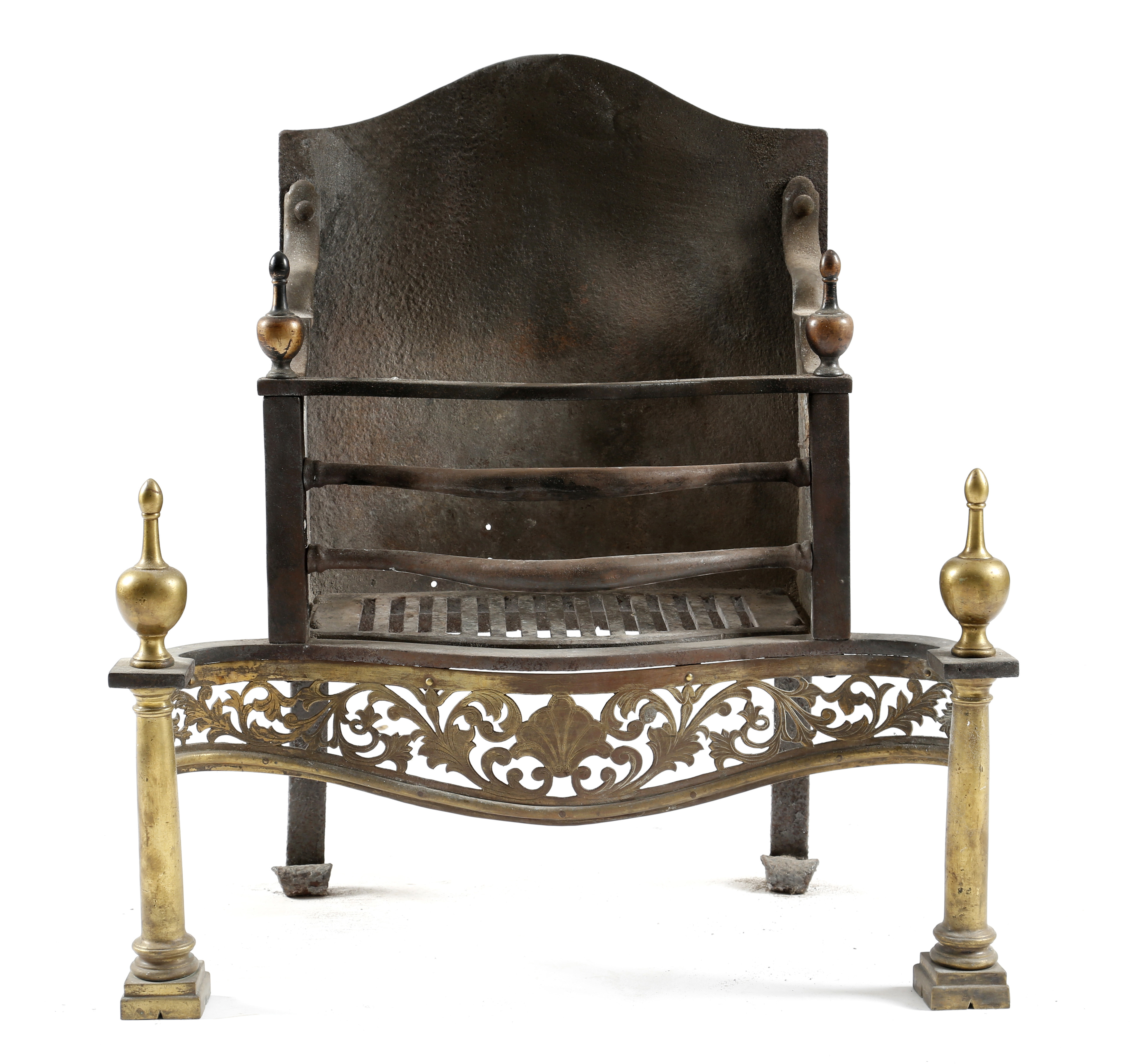 A BRASS AND IRON FIRE GRATE IN GEORGE III STYLE
