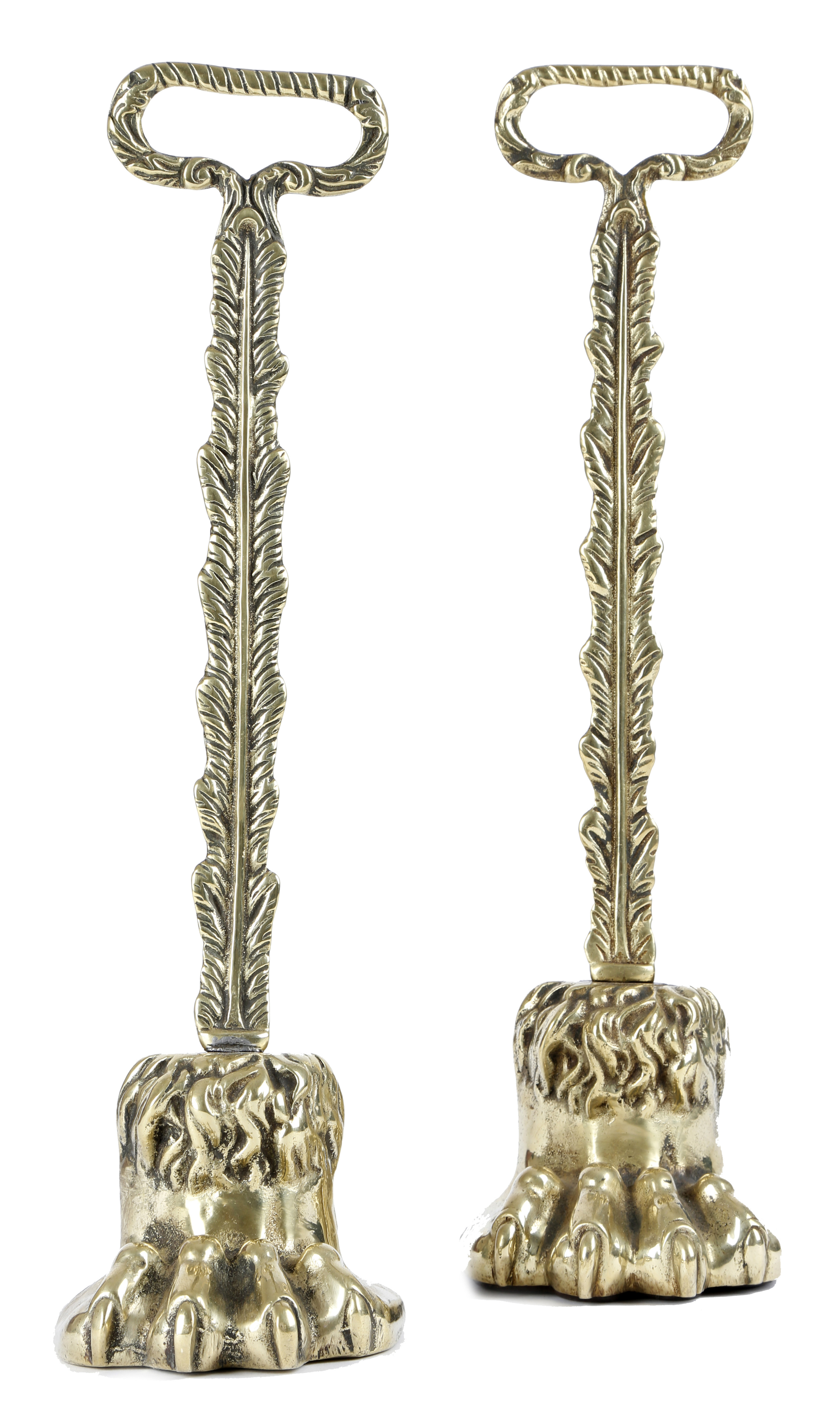 A MATCHED PAIR OF 19TH CENTURY BRASS LIONS PAW DOORSTOPS