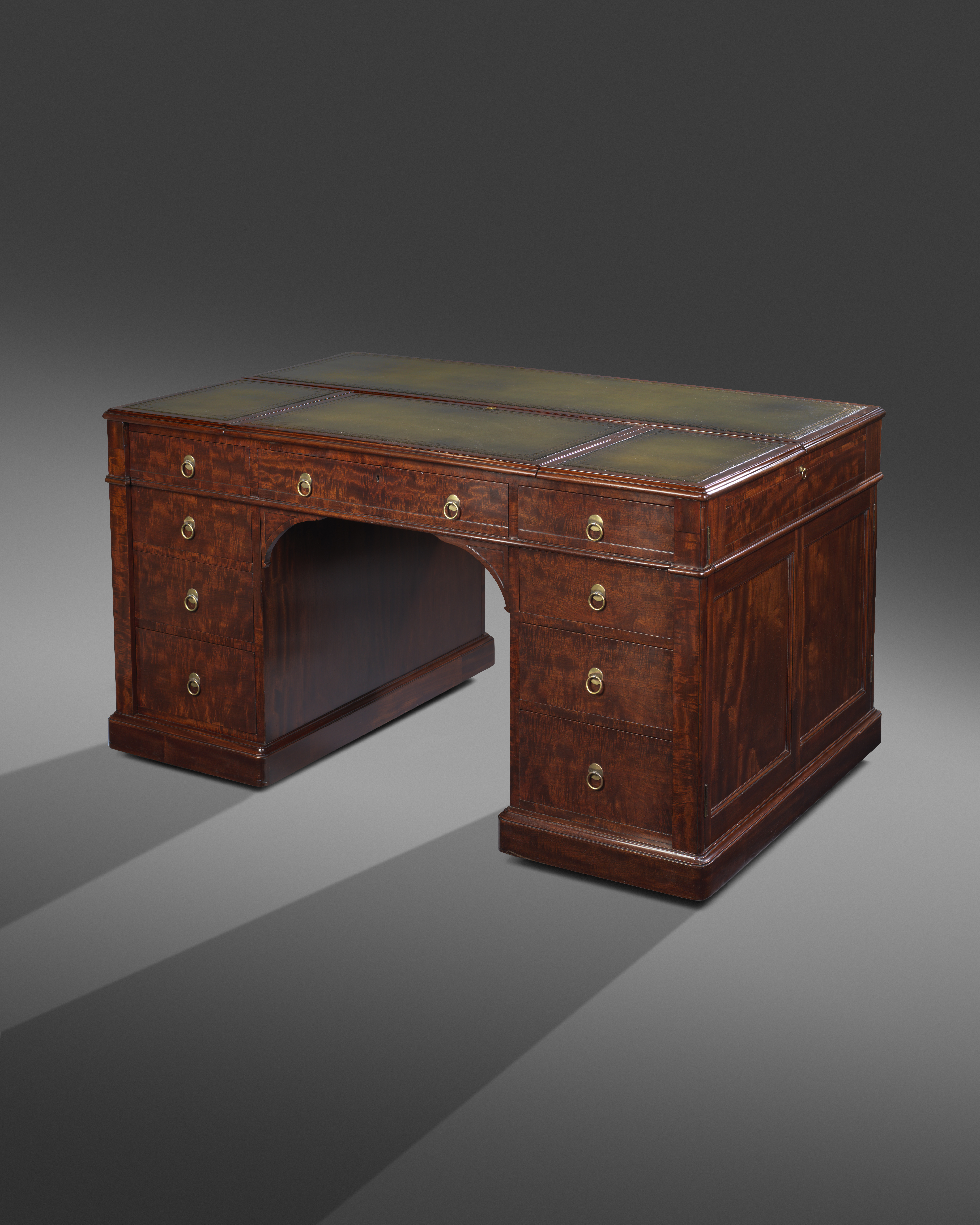 A FINE 19TH CENTURY FIDDLEBACK MAHOGANY TWIN PEDESTAL PARTNER'S DESK BY GILLOWS