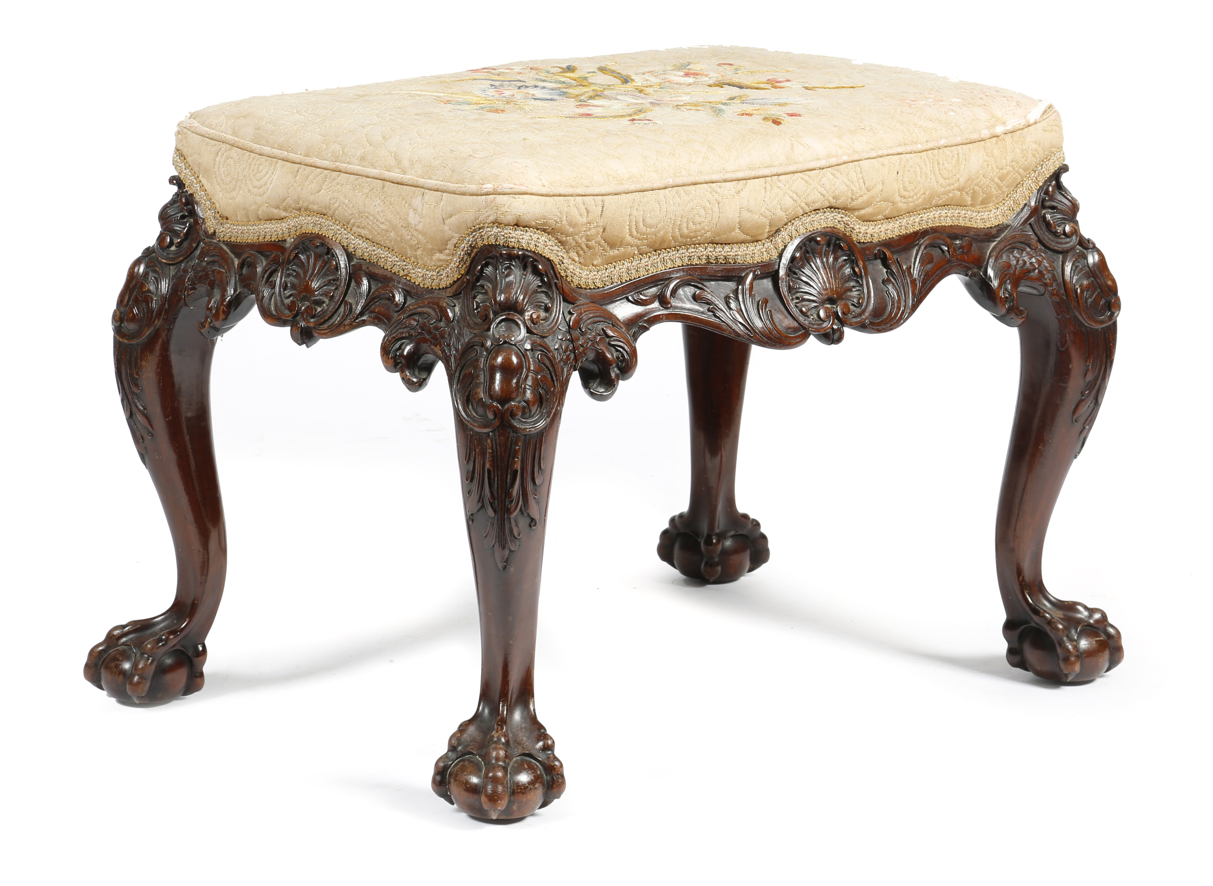 A MAHOGANY STOOL IN GEORGE II STYLE