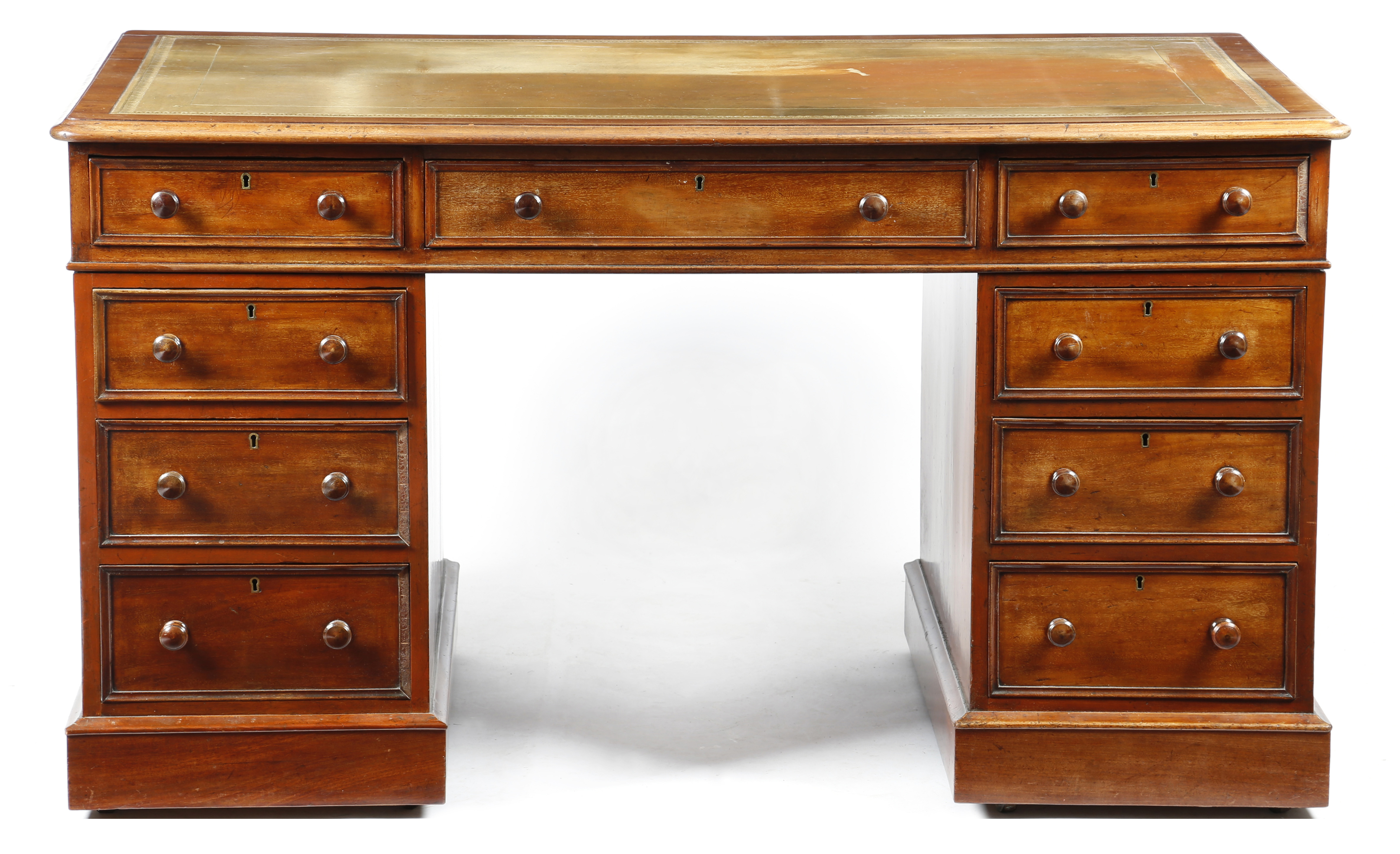 A VICTORIAN MAHOGANY TWIN PEDESTAL DESK