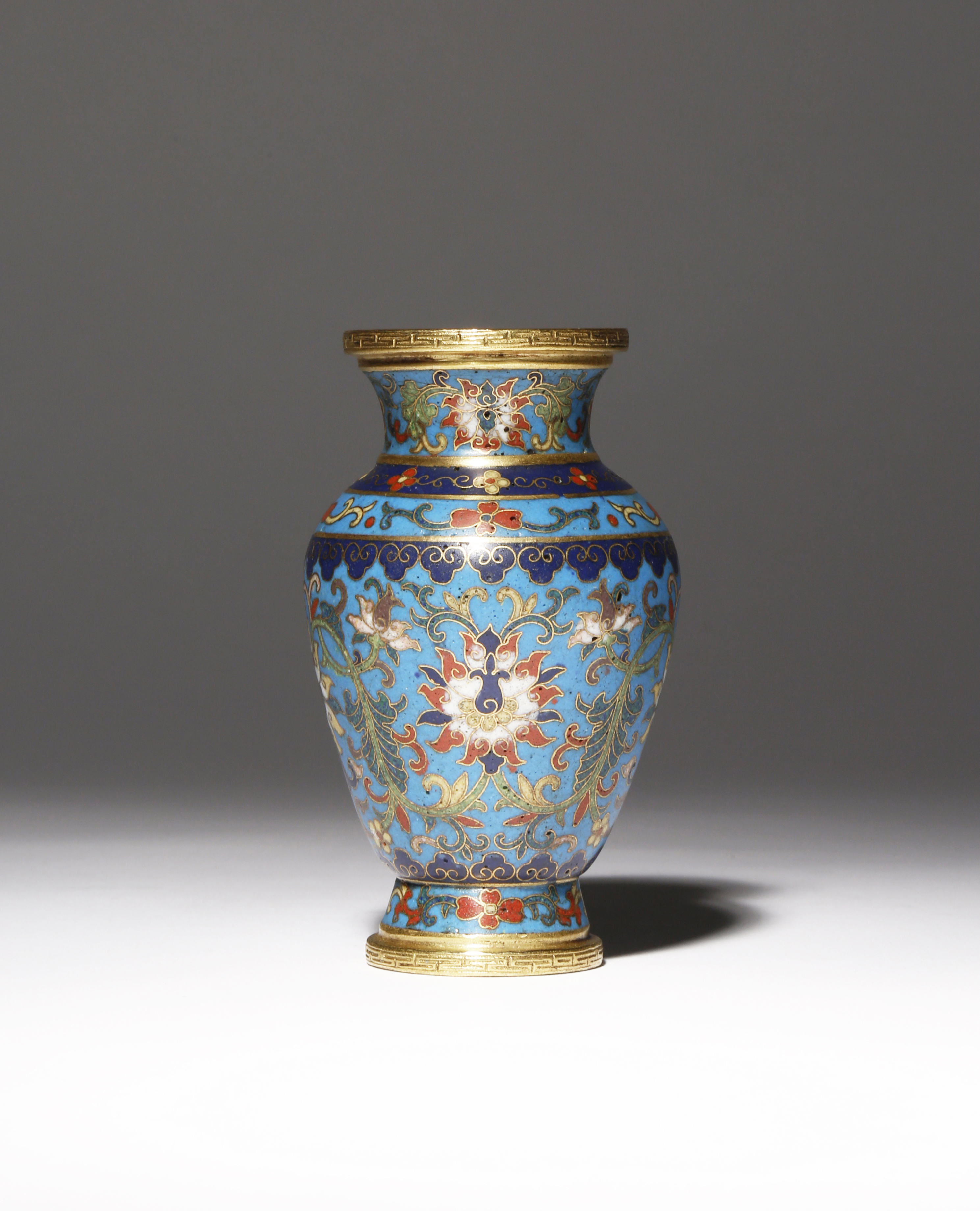 A SMALL CHINESE CLOISONNE 'LOTUS' VASE