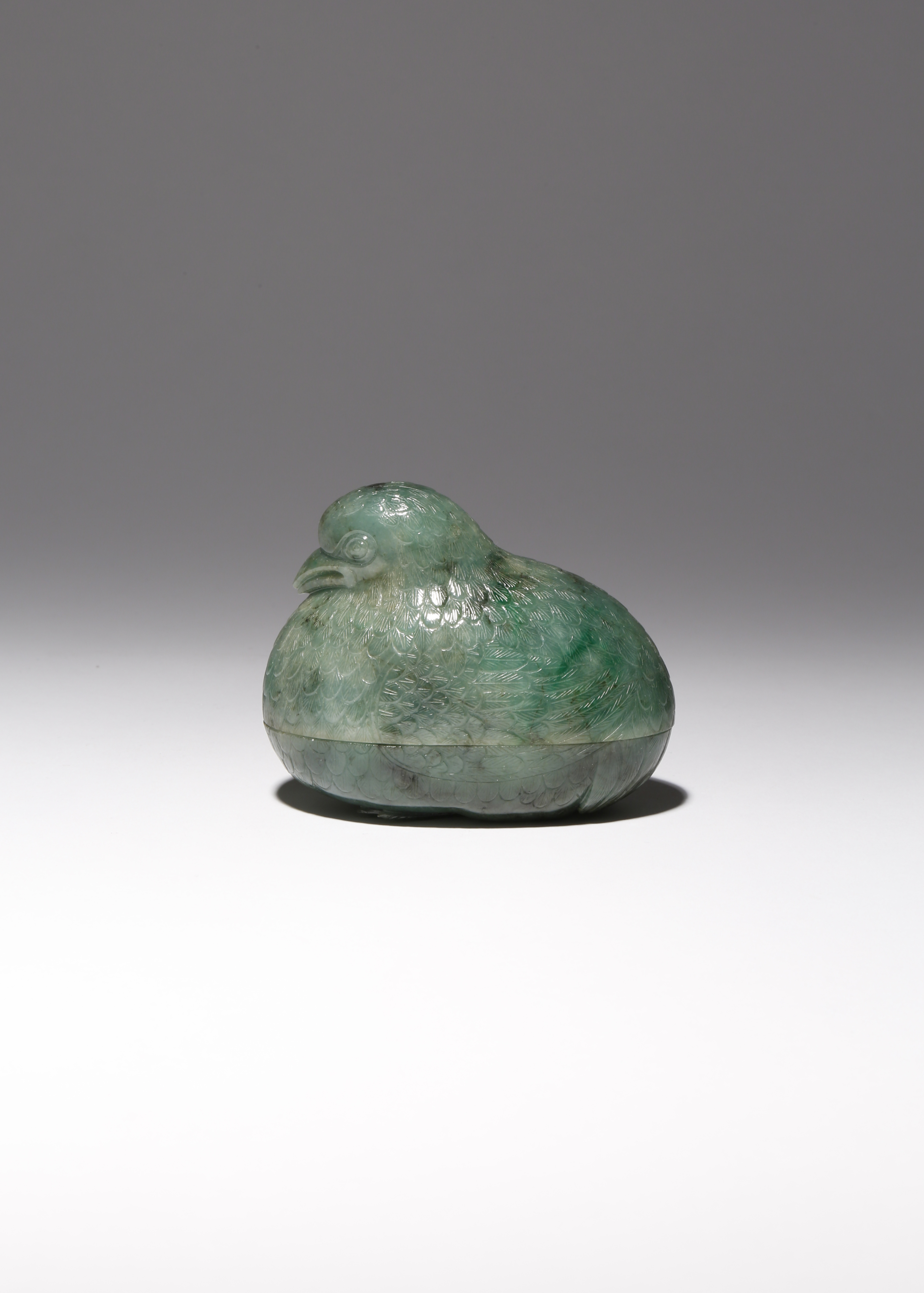 A CHINESE JADEITE 'QUAIL' BOX AND COVER