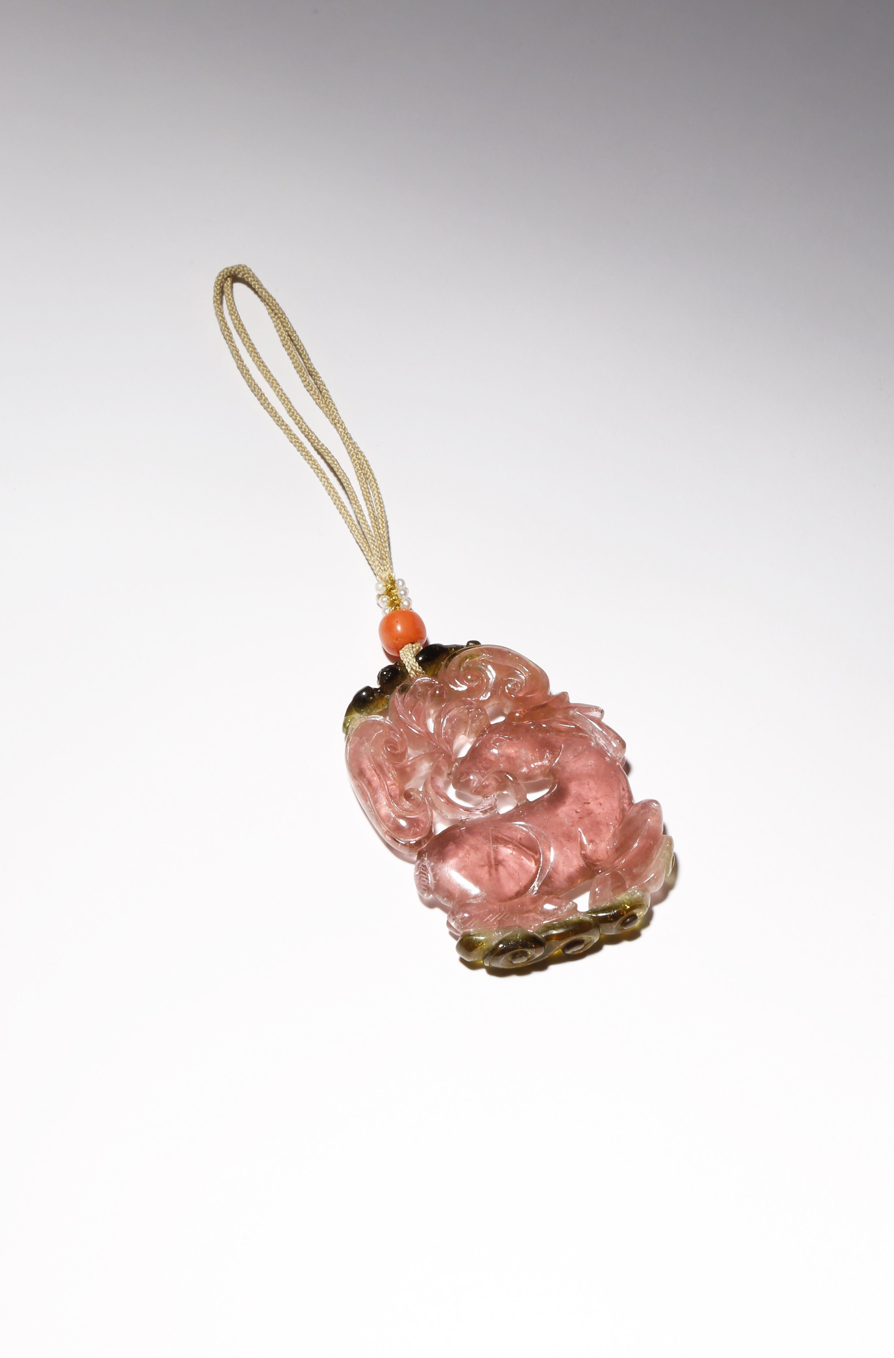 A CHINESE PINK TOURMALINE 'DEER' PENDANT