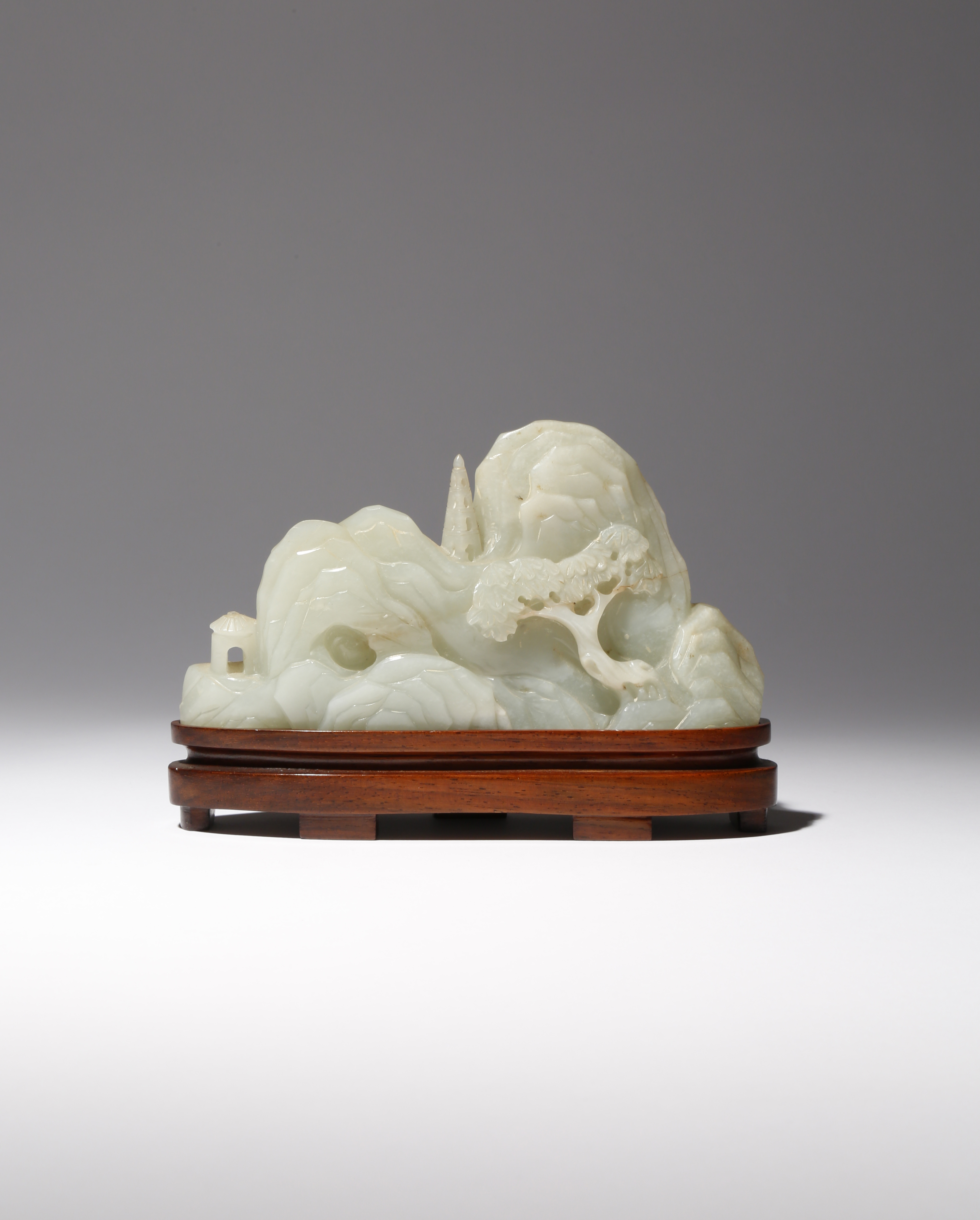 A CHINESE CELADON JADE 'MOUNTAIN' CARVING