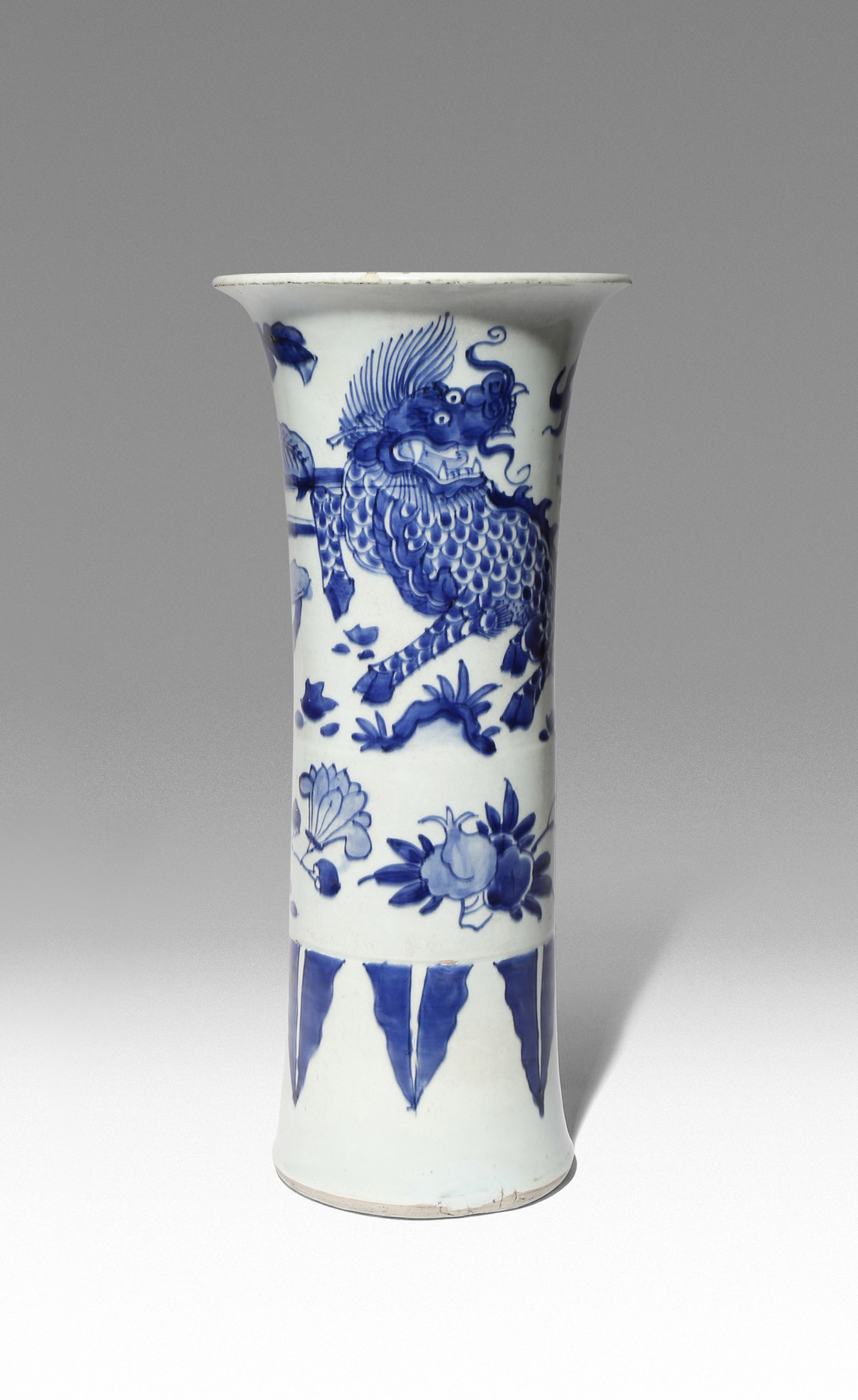 A CHINESE BLUE AND WHITE 'QILIN' SLEEVE VASE