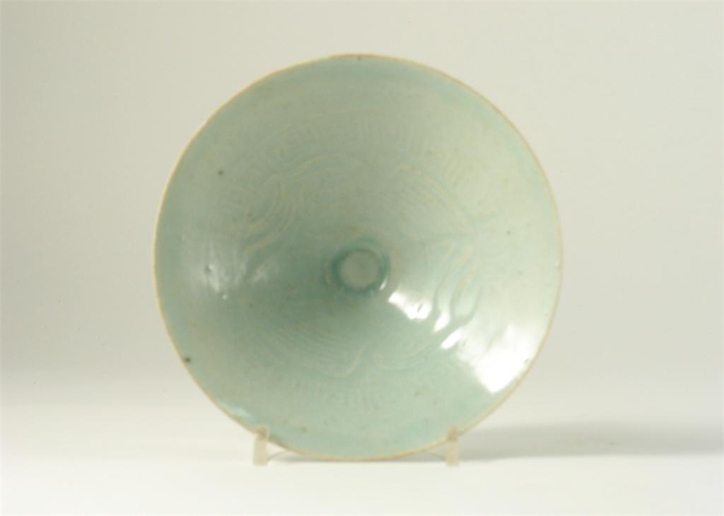 A Chinese Yingxing conical bowl, carved with phoenix encircled by a band of keyfret, Song dynasty 960-1279 AD, 16.5cm.